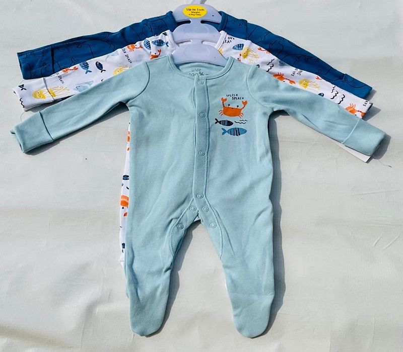 In-store availability, prices and promotions may vary from those online.Fill their first wardrobe with this super sweet three pack of sleepsuit. Made from pure cotton that is comfortable to wear and stays soft after repeated washing and tumble drying. Featuring printed back neck labels which are super soft on baby's neck. These sleepsuit have integral scratch mitts up to 3-6 months and the feet are designed with lined inners comfort