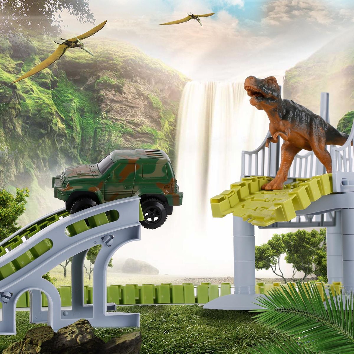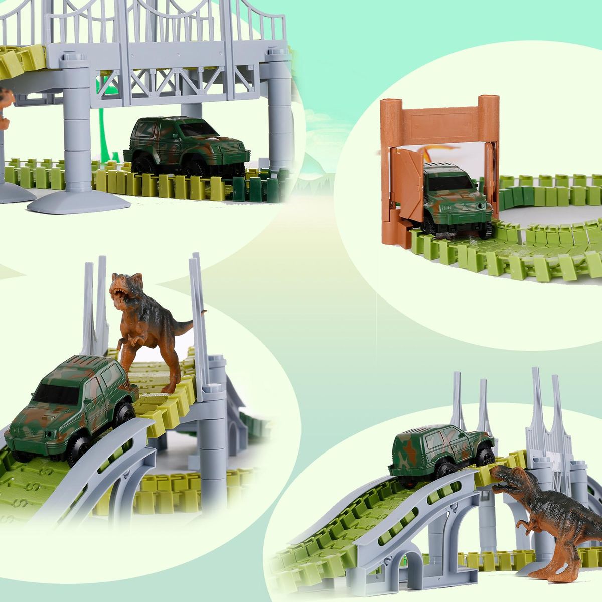 Buy Dinosaur World Race Car Track Flexible Assembly 144 Piece Road Track Dino Toys Bridge Best Gift for Kids Boys Girls DIY Cooperate Ability Adventure Creator Playset in Nigeria
