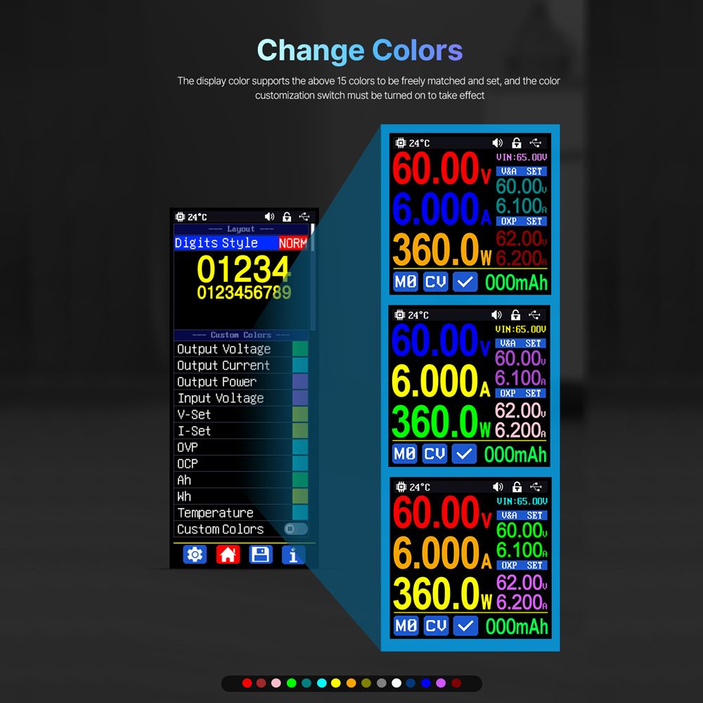 【Custom Color】: The display color supports 15 colors to be freely matched and set, after customizing the color, you can turn on the color customization switch to take effect.
