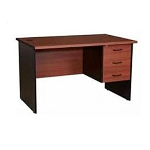 An office table with 3 drawers and a sturdy design.