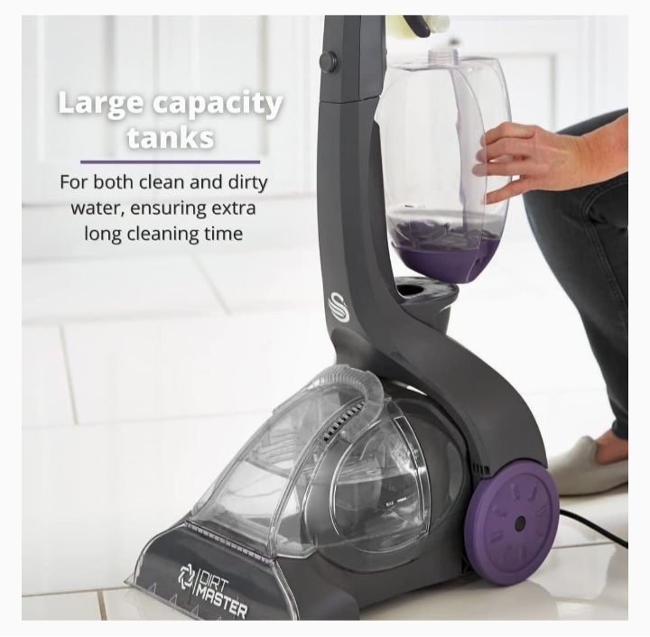 Large capacity tanks: For clean and dirty water, ensures extra cleaning for longer without the need to empty and refill; includes 250 ml carpet shampoo/cleaning solution.