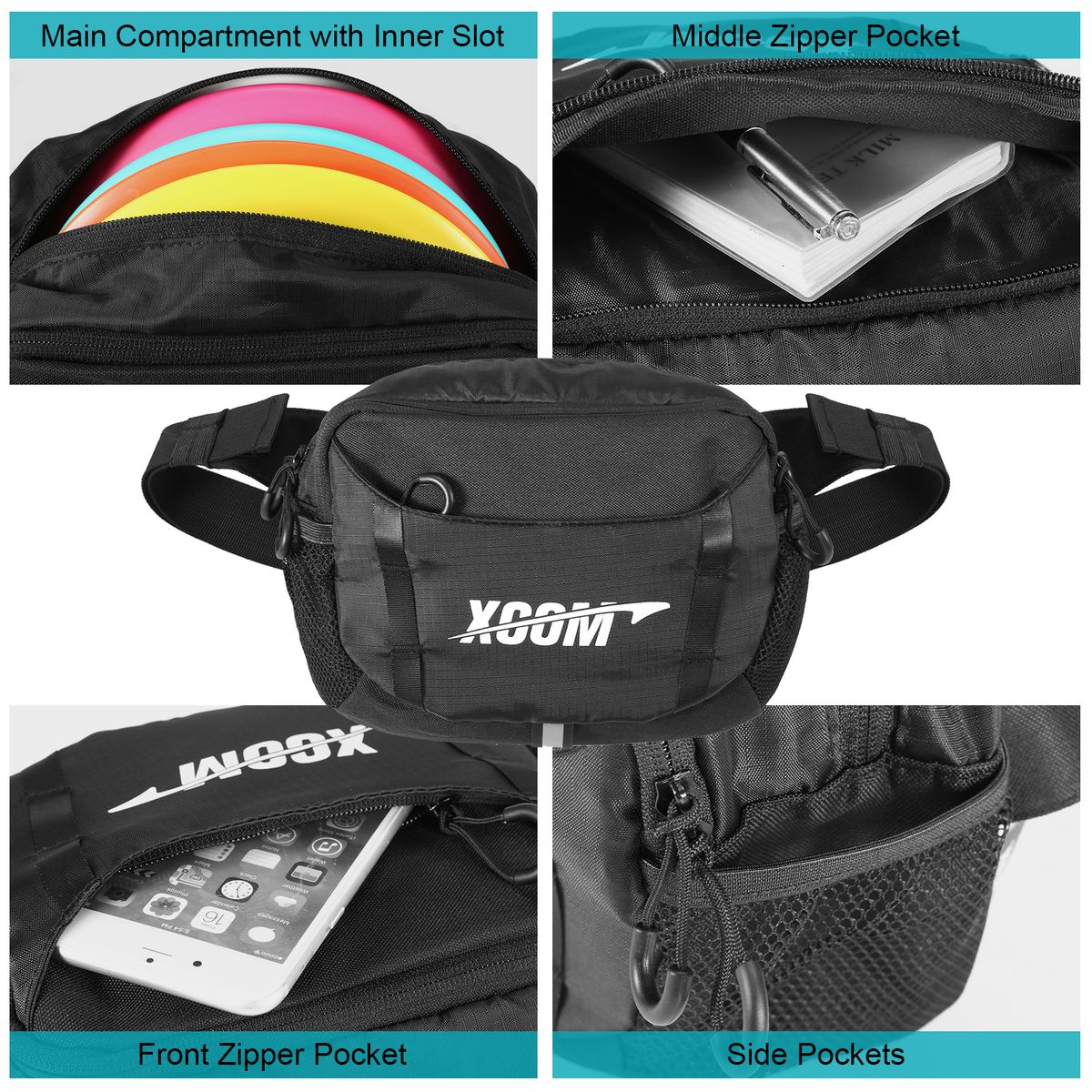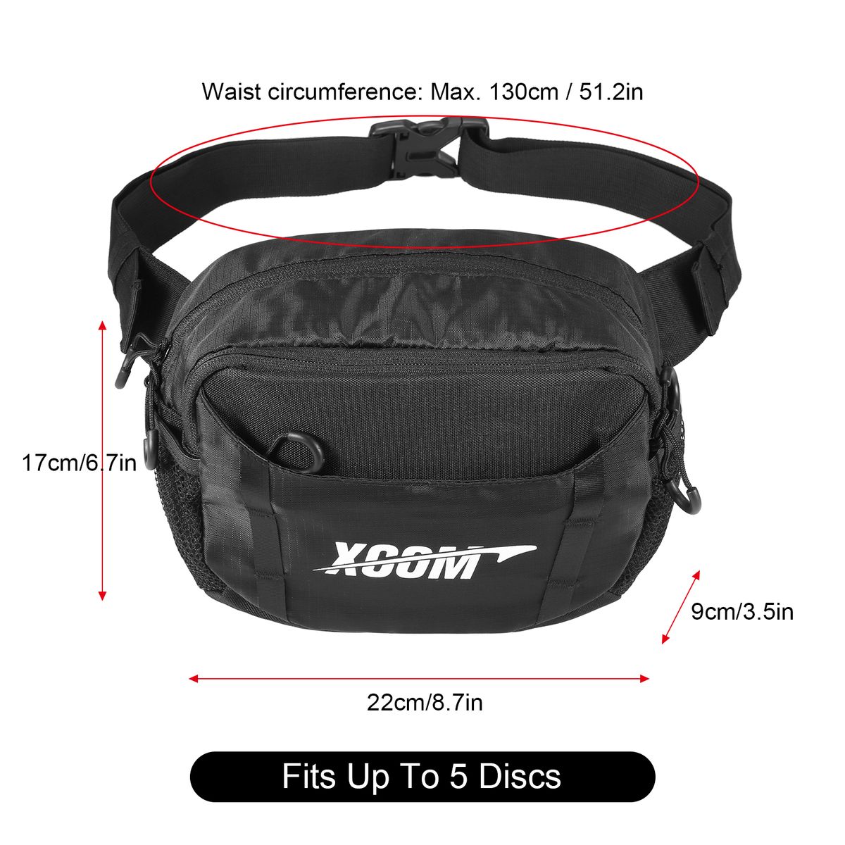 Disc Golf Waist Bag has multiple zippered pockets,which is easy to store and carry 5 discs(not included).