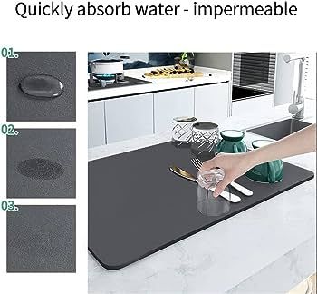 - SUPER ABSORBENT & QUICK DRY: The kitchen counter mats are made from diatomaceous earth, breathing leather surface and natural rubber base; Diatomaceous earth can hold up to 150% of its weight in moisture and evaporates quickly