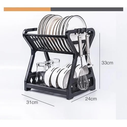 Buy Dish Drying Rack2 Tier Dish Racks With Tray - Cup Utensil Holder - Black in Nigeria