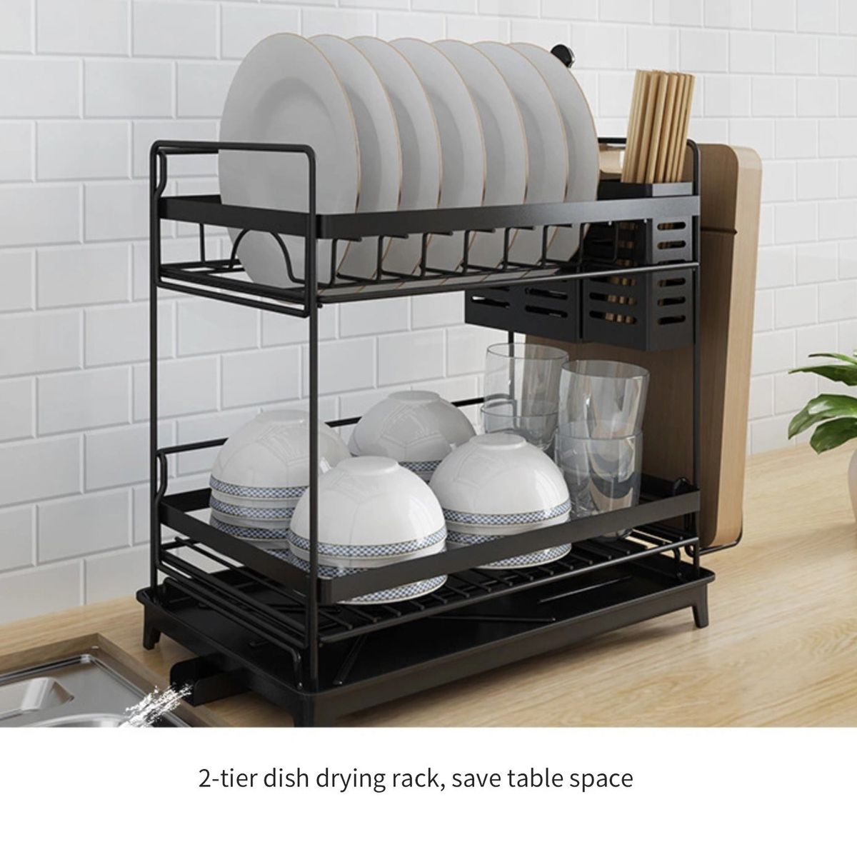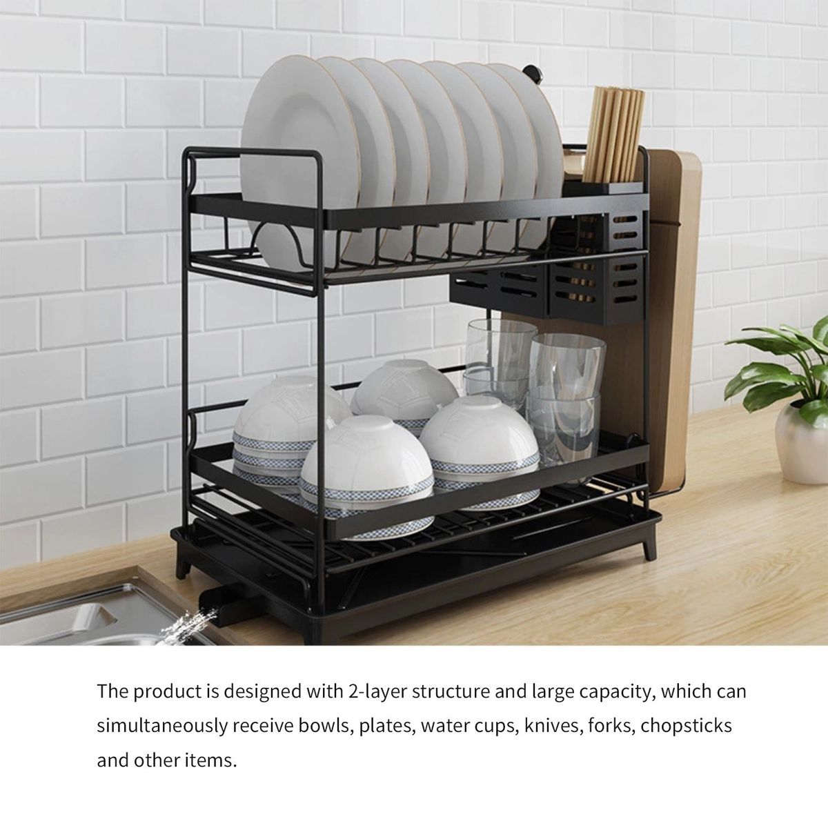 The product is designed with 2-layer structure and large capacity, which can simultaneously receive bowls, plates, water cups, knives, forks, chopsticks and other s.