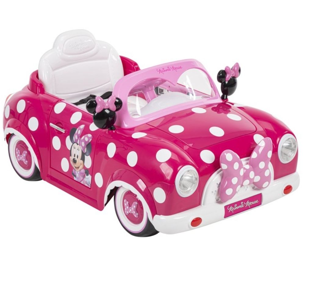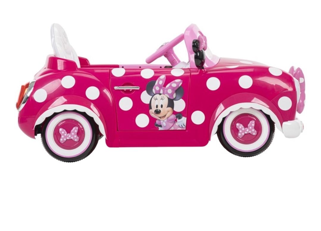 About this itemProduct detailsDisney Minnie Mouse Convertible 6V Battery-Powered Ride-On by Huffy.This ride-on is easy to assemble so in no time it is ready to roll and ready for fun!It's love at first sight when your little girl sees the big bow on the Minnie Mouse convertible! Not to mention, this Minnie Mouse battery ride-on includes fun lights and sounds to make it a realistic ride!Huffy has taken extra steps to make the assembly simple so you can put the ride-on together fast and start the fun memories. In just a few quick steps, you're ready to go. Snap in the wheels, connect the battery, add the seat and windshield, then snap in the mirrors and you're done and ready to go.The durable ride-on has the total Minnie Mouse look plus a realistic dashboard for a great driving experience. It's easy and fun to drive in forward and reverse, moving up to 2.5 miles per hour. A convenient battery-charging port makes it easy to recharge when the ride is over for the day.Let the imaginative fun start now! From Huffy, We Make FunTo see the Minnie Mouse Convertible for girls in action, check out this video!For more Huffy Content, visit our Instagram Page!To see how this Disney Minnie Mouse Ride-On is assembled, click here!Disney Minnie Mouse Convertible Girls 6-Volt Battery-Powered Electric Ride-On by HuffyBattery and Power: 6-volt battery with convenient rechargerRecommended Age: 3 to 7 yearsMax Height: 37",Max Weight: 65 lbsSpeed: Forward and Reverse movement up to 2.5 miles per hourFrame: Durable molded resinSteering Wheel: Comfortable Jr. designTires: Durable resin with treadCarton Dimensions: 55.9" x