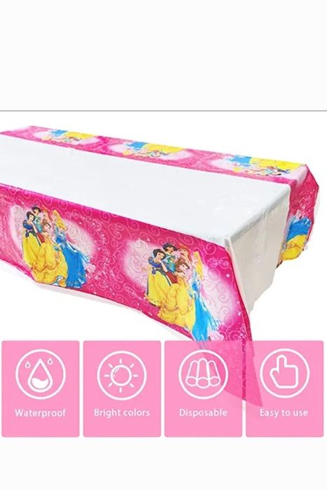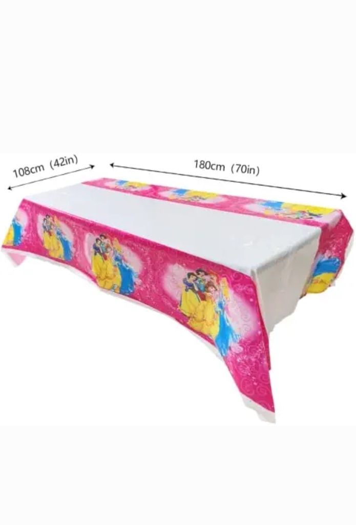 birthday party more colourful with our plastic Disney princess character table cloth. This table cloth is very colourful, stylish, unique and reusable.Kids love Disney princess character so it makes a perfect party accessory for a Disney princess themed birthday party. The table cloth is made of plastic which makes it waterproof and stain proof and re-usable.Make your kids