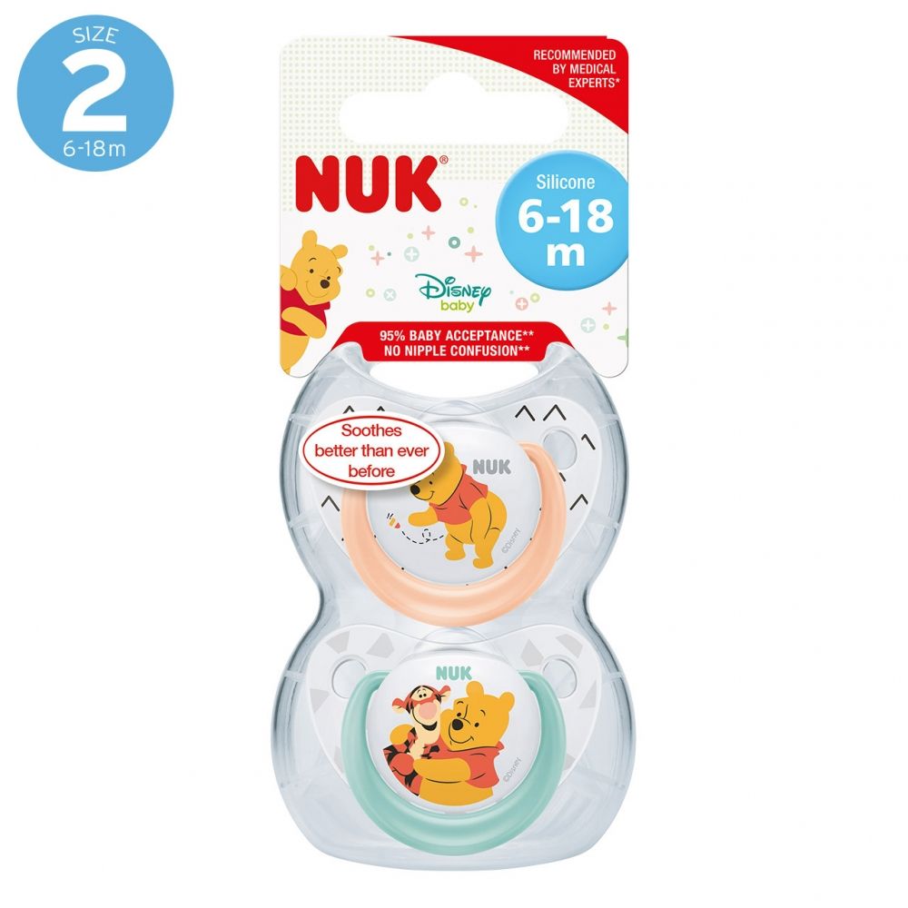 The cheerful Winnie the Pooh, the ever popular bear, now adorns the NUK range with heart-warming designs.