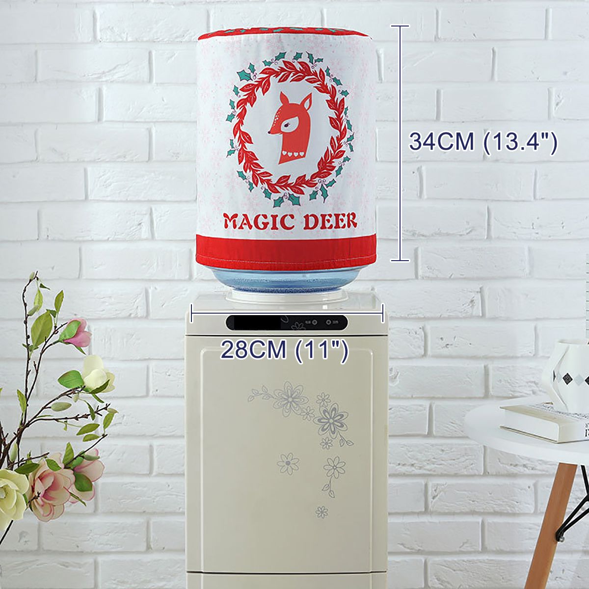 Similar Items Description Water Dispenser Barrel Covers, Durable Dust Proof Fabric Bucket Decor, Reusable Furniture Standard Cover Protector for Home, Office Technical Specifications: : As Pattern: 01 Red Deer/02 Green Deer/03 Rabbit/04 Horse/05 Elk/06 Fish/07 Ice /08 Fox Penguin Dog Material: Polyester Height: 34CM (13.4") Diameter: 28CM (11") Features and Benefits: This cover is made with highly elastic stretch fabric, easy to clean and durable to use, fits most standard water dispenser buckets. Wear the lovely clothing around your water dispenser bottle, bringing rich festival atmospheres to your home perfect decorations. The water bucket dispenser dust cover is great gifts for your family, lover, friends, colleagues or classmates. Wash not fade, not shrink, and luster bright as before. Water Dispenser Bottle Dust Cover. Ideal for protecting and decorating your water dispenser bucket. Package Contents: 1x Water Dispenser Bucket Cover Notice: 1. Please allow 1-3mm error due to manual measurement.Pls make sure you do not mind before you bid. 2. The may have different as the difference display,pls understand. Detail Image
