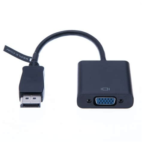 Converts a graphics card's DisplayPort output to a VGA output for use with a VGA monitor.