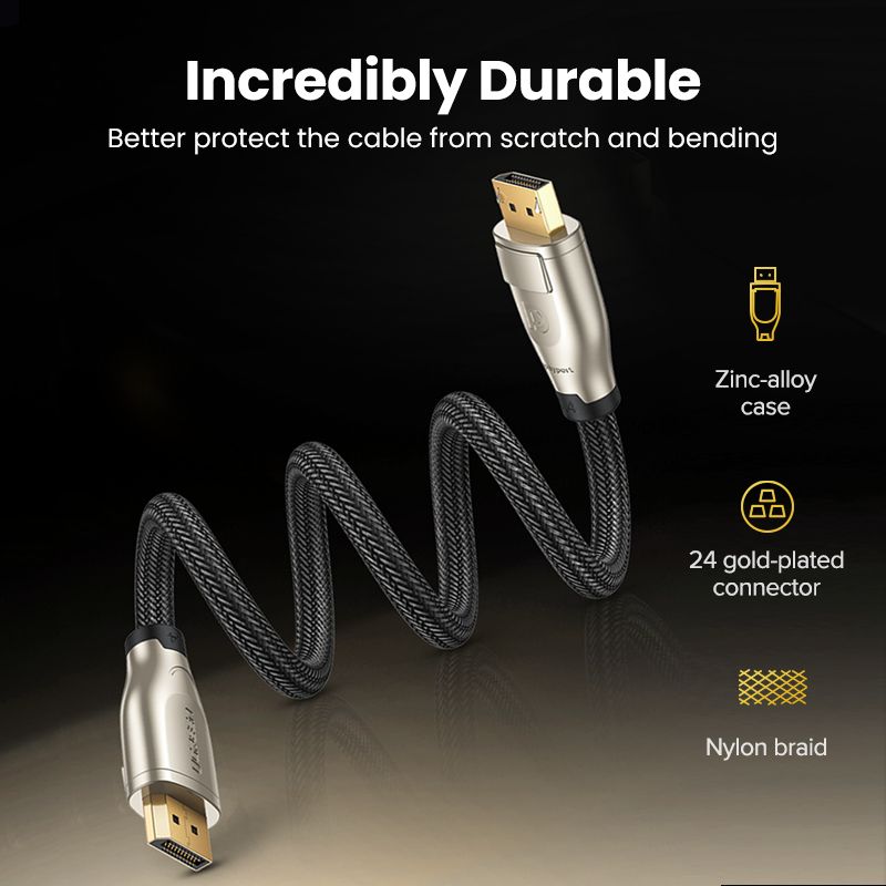 UGREEN DP Cable built with Zinc alloy housing, go-ld-plated connectors, which extend the plug and unplug frequency; Durable braiding ensures a sturdy but not restricting in bends.