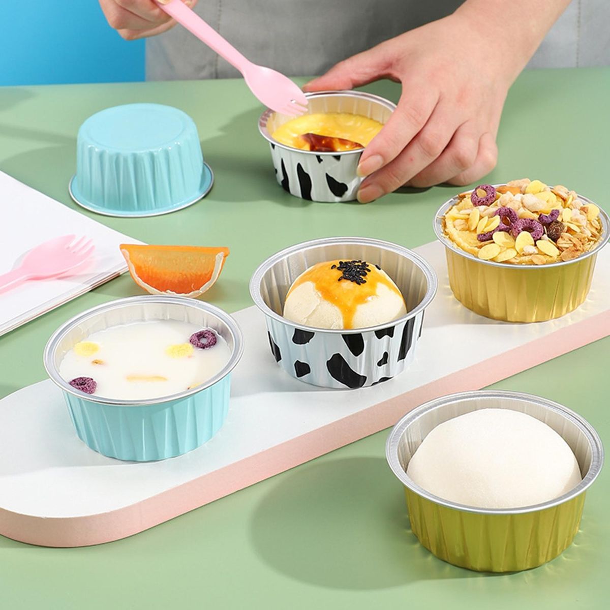 Our aluminum foil cake cups, the ultimate solution for hassle-free baking! available in blue, gold, and white, these cake cups offer a variety of options to match your unique baking style. say goodbye to tedious scrubbing of residue off baking sheets as these cups save you valuable cleaning time. simply dispose of them after use and enjoy your baking time without any worries.