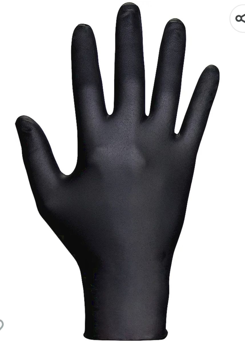 Disposable Black Hand Gloves - Latex Free, Chemical + Puncture Resistant, Textured Grip.