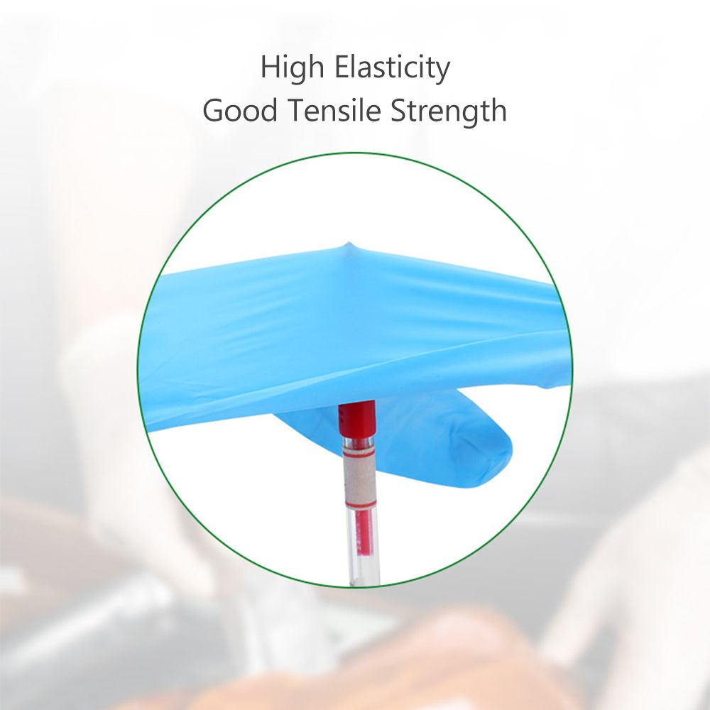 Made of premium nitrile material, it ensures high elasticity, good tensile strength, puncture resistance, durability and safety for use.