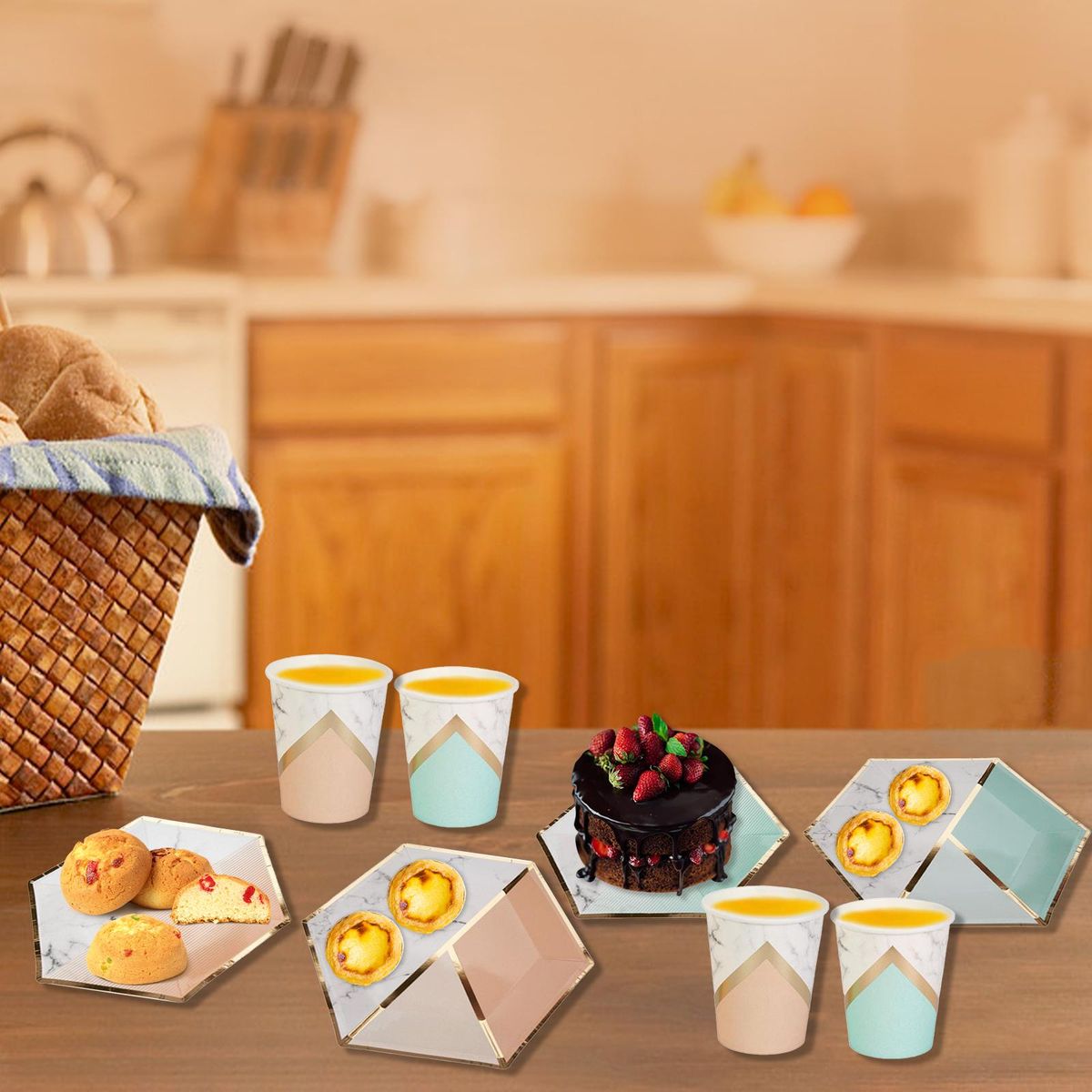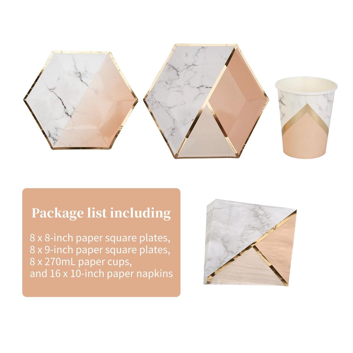 Buy Disposable Tableware Set for 8 Guests Marble Pattern Disposable Paper Dinnerware Hexagon Plates Cups Napkins for Birthday Weddings Celebrations Kids Party in Nigeria
