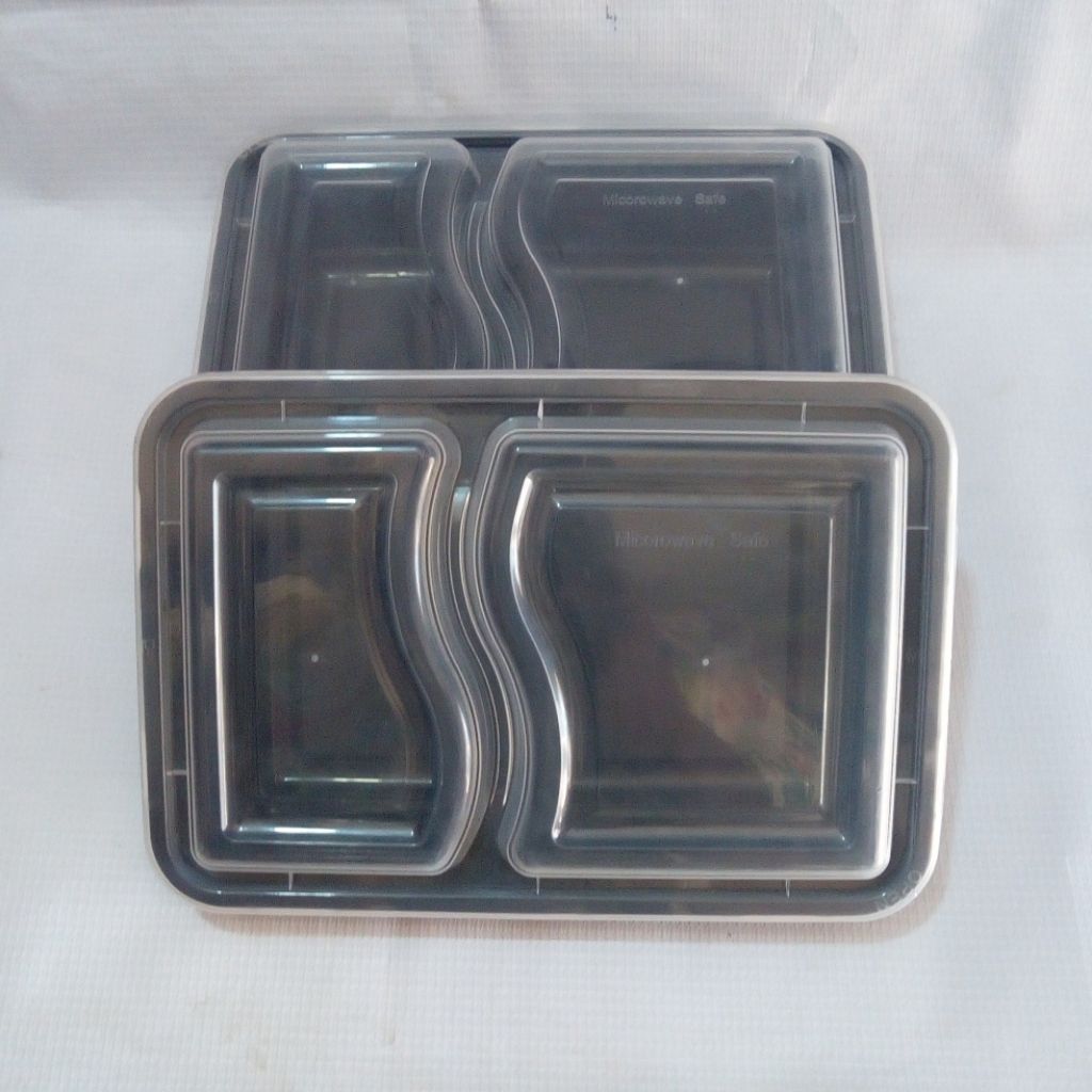 Pack Of 50 Take-Out Plates Bulk Pack, Two Compartment Meal Prep Food Containers, Great For Catering Services - These stack-able serving containers are perfect for packaging food at your kiosk, food truck, catering service or restaurant for to-go meals. they stack neatly on top of each other allowing for completely mess free transportation and making all your customers happy as well.