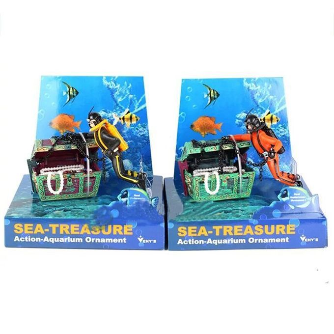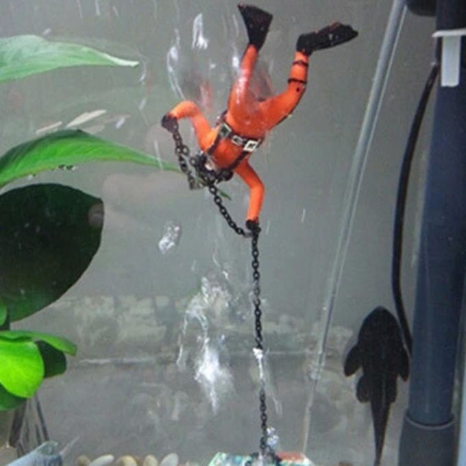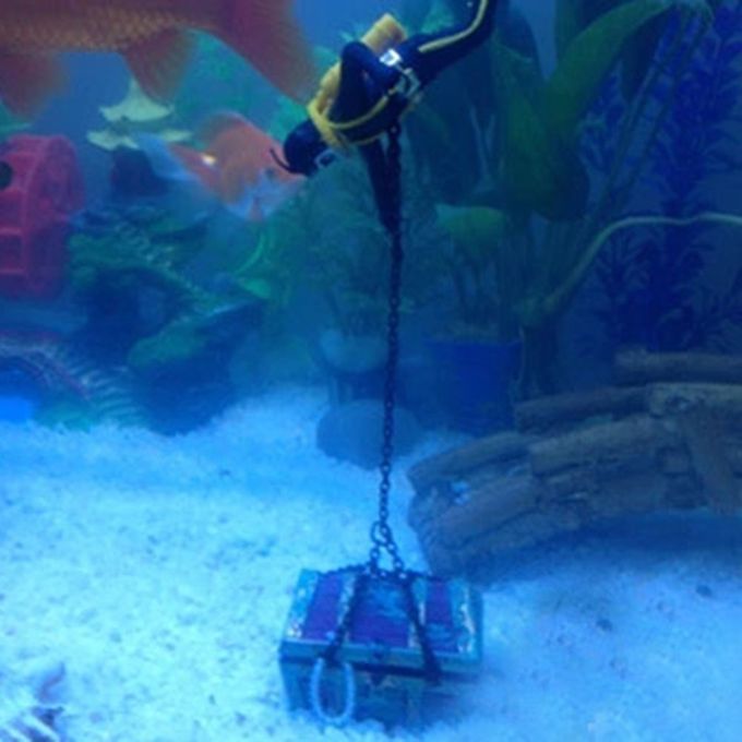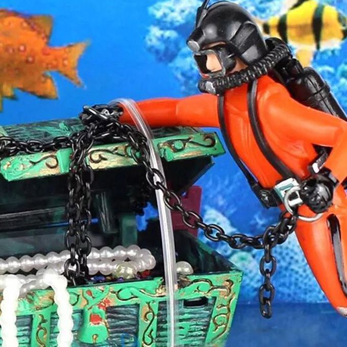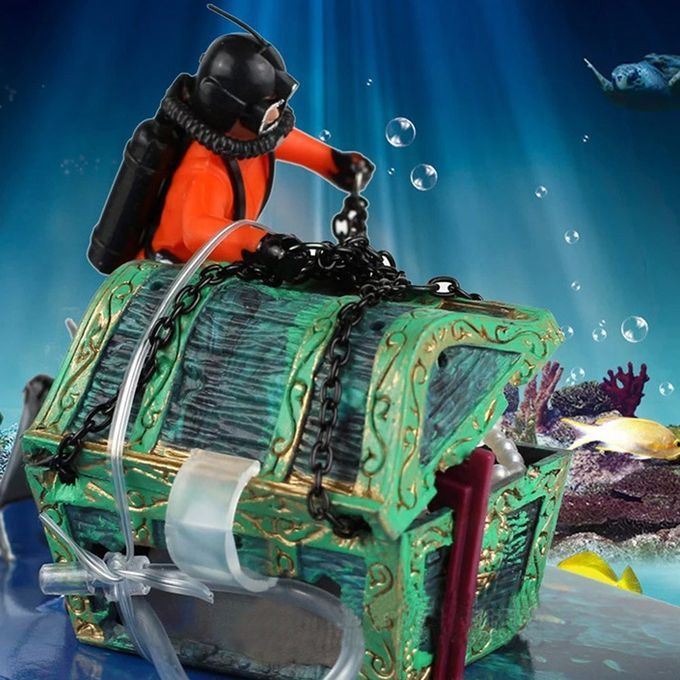 1.Fun toy:It appears like a treasure diver wanting to get the chest out of the water. It's a fun aquarium decor to have!