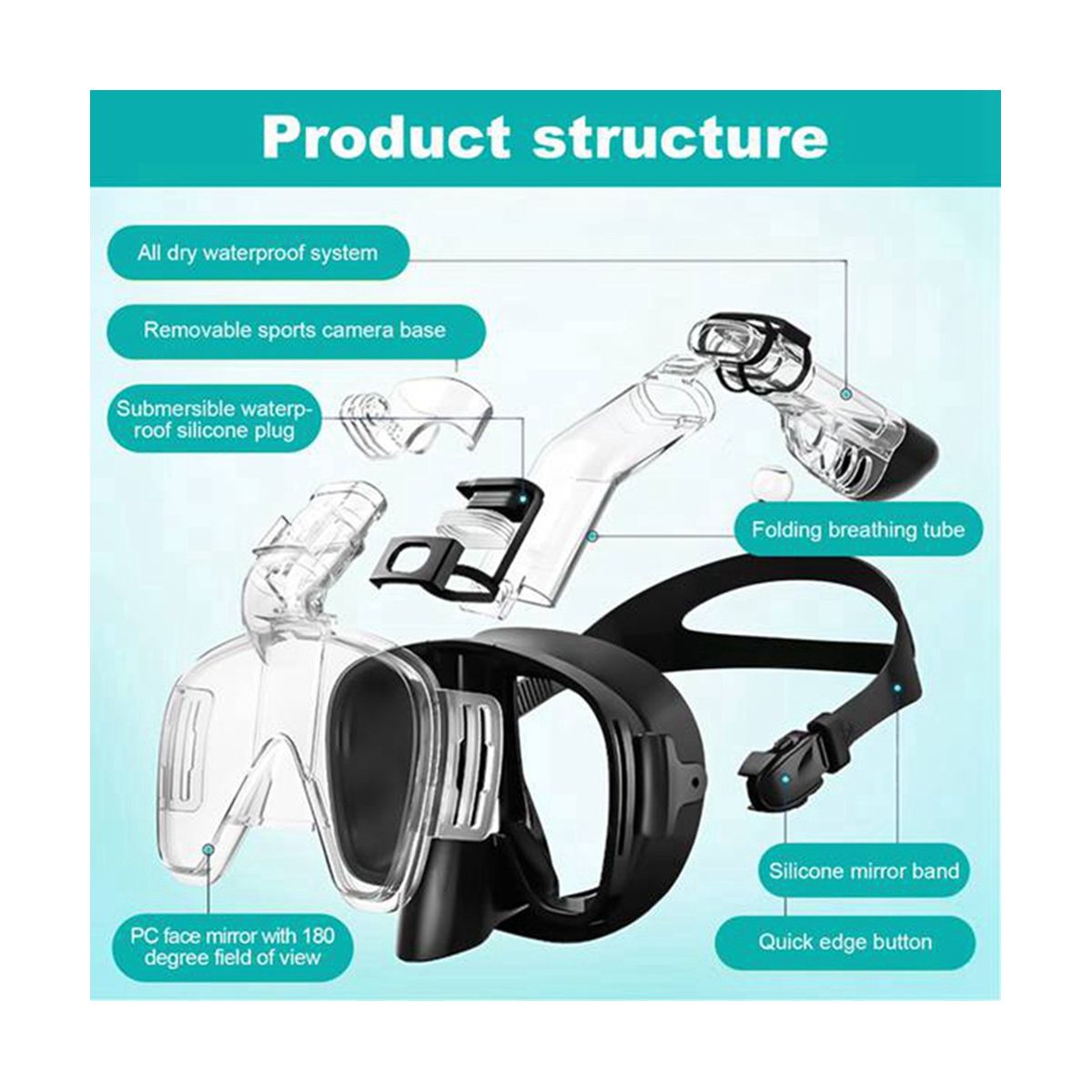 [180 degree panorama] The snorkeling diving mask is made of professional high-definition anti-fog flat lens, which has a wide field of vision, high light transmittance and no dizziness. Provide you with high definition and underwater view. The diving snorkeling mask has a camera mount designed to help you record every beautiful moment underwater.