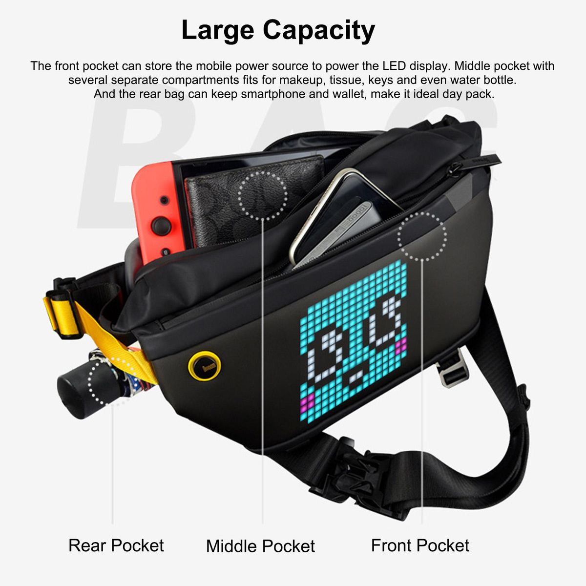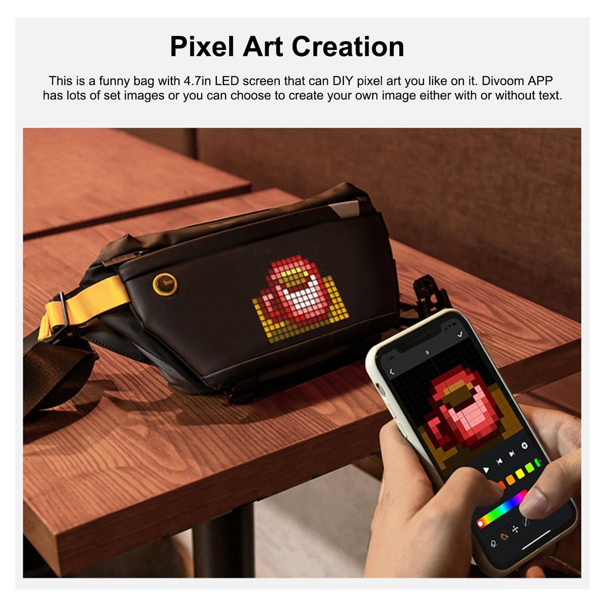 Buy Divoom Sling Bag with LED Display Pixel Art Design Outdoor Waterproof Crossbody Bag Chest Backpack for Biking Hiking Travel Outside Activity in Nigeria