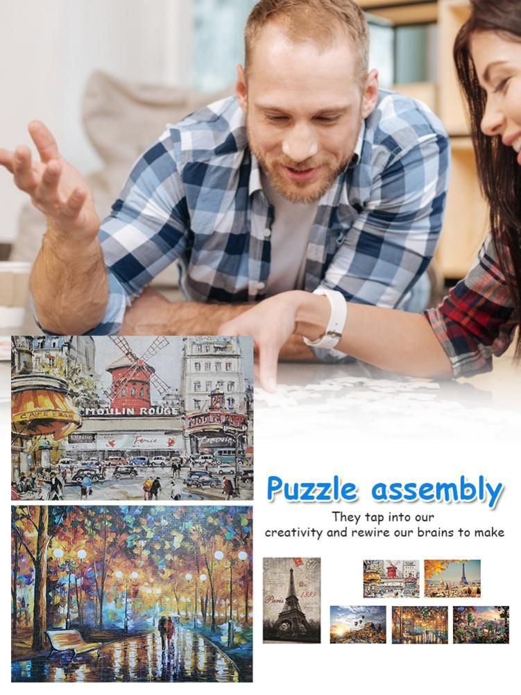 Modern puzzles are mostly made of cardboard, which makes them cheaper and easier to make. The pattern of a jigsaw puzzle is a whole piece of fine art printed on the surface of cardboard before cutting. The content of the picture can be enlarged photography, painting, or other kinds of flat art. The mapped cardboard will be sent to a special stamping machine, which is equipped with a steel cutting tool set in a predetermined pattern. After being pressed by the machine, the cardboard will be cut into pieces by the cutting tool set. The process is similar to that of a graphic cookie, except that the jigsaw presses have a much higher impact. For a typical 1,000-piece jigsaw puzzle, for example, up to 700 tons of pressure are required to be generated during the operation of the machine tool in order for the tool bank on the die to fully cut through the cardboard. The die (printing plate) of the jigsaw puzzle is usually made of plywood and other plates. The mold maker first marks or burns grooves on the template according to the pattern of jigsaw pieces, and then inserts the one by one into the grooves to assemble the tool set. The tool set is also covered with a layer of elastic material, usually foam rubber, which is used to cardboard pieces out of the holes in the tool set after printing.