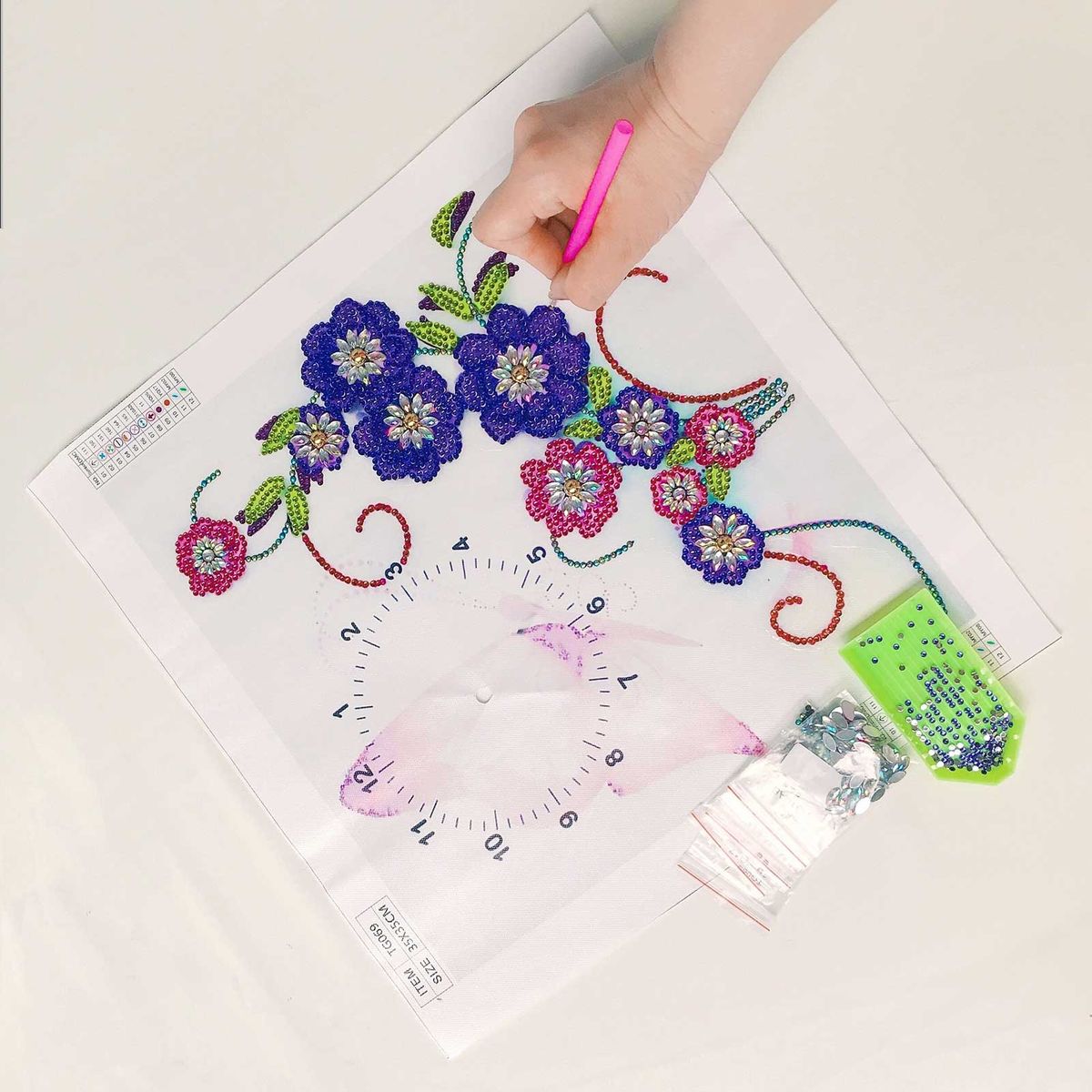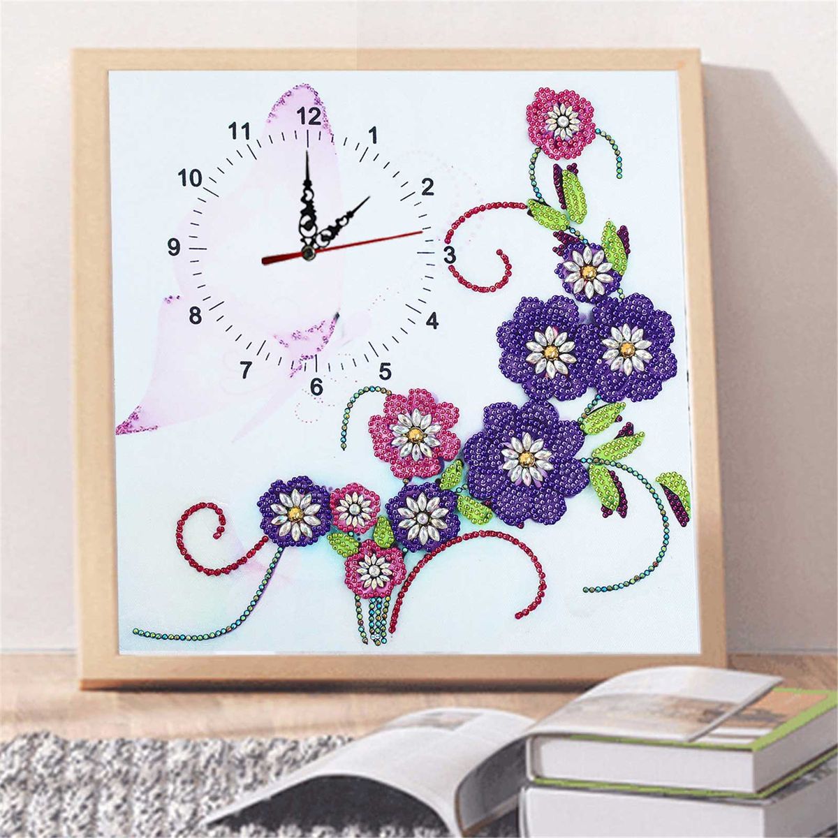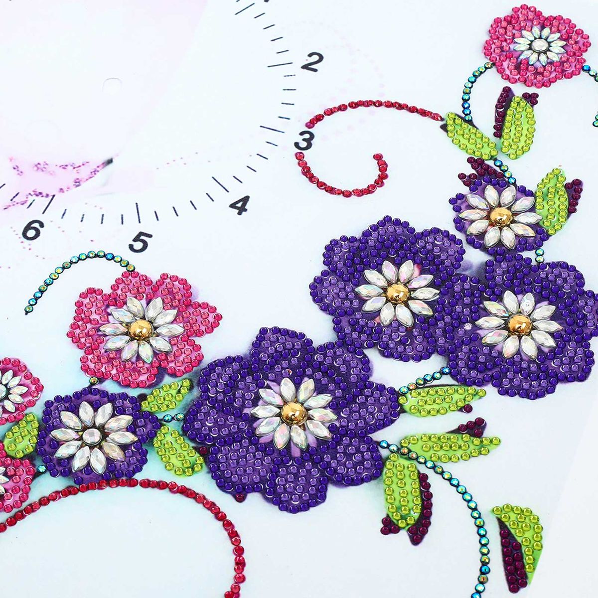 A clock pattern canvas needs to paste diamonds, easy to operate. After finished and installed watch movement, it would be a nice wall decor and an exquisite clock.