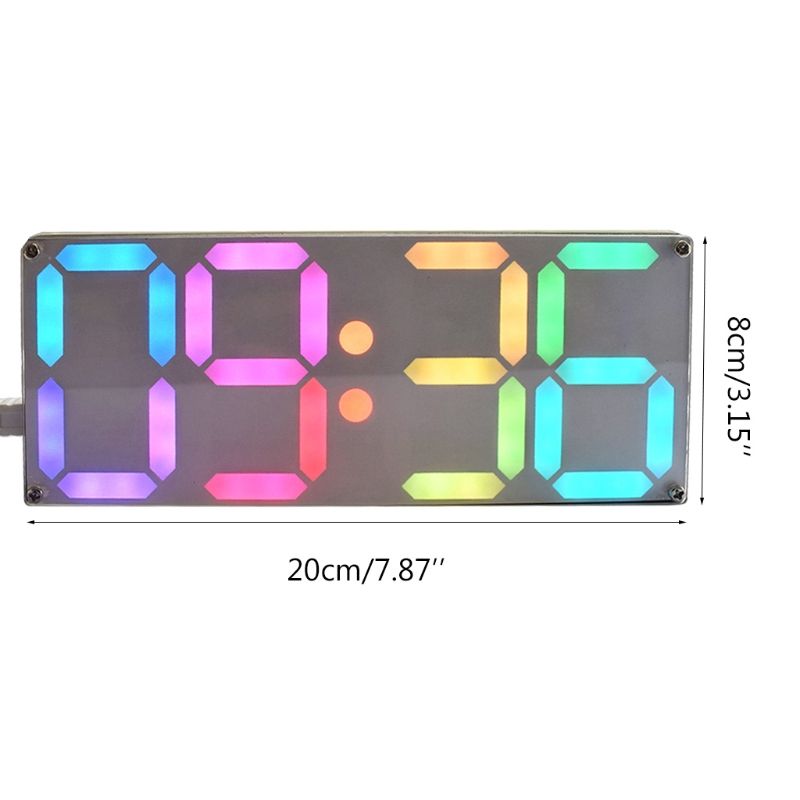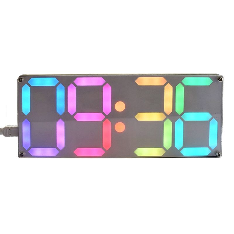 This is a customizable color rainbow clock, each of which digit can be customized to a favorite color, or set to a different color gradient aurora effect, each segment of each digital number is in a gradient, a clock can be displayed all the colors of the rainbow. The large digital display design makes the color display more abundant, and the built-in 13 menu settings can be set to different functions and effects.