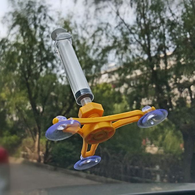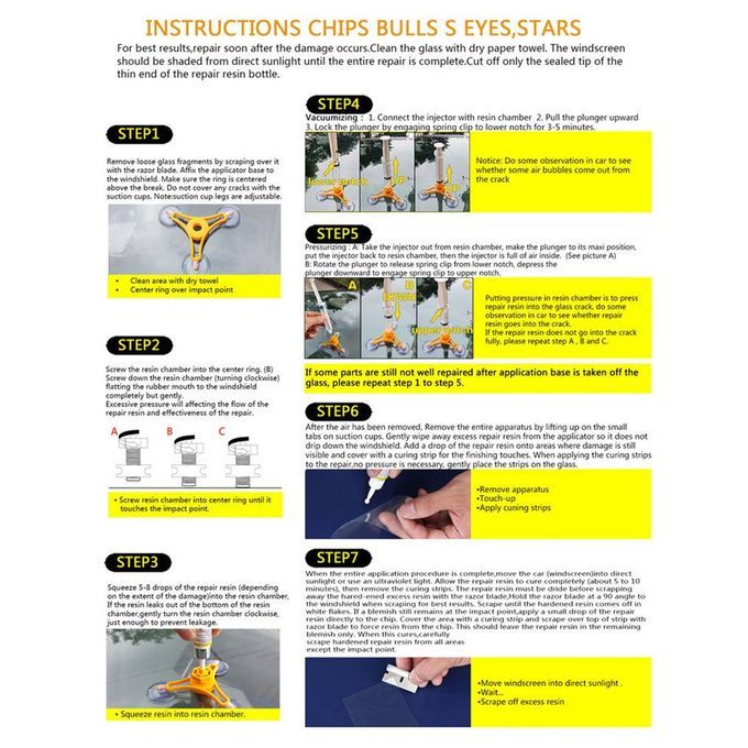 DIY windshield repair kit is designed to fill the air avity with a strong adhesive that will bond the loose gl and restore the visibility.