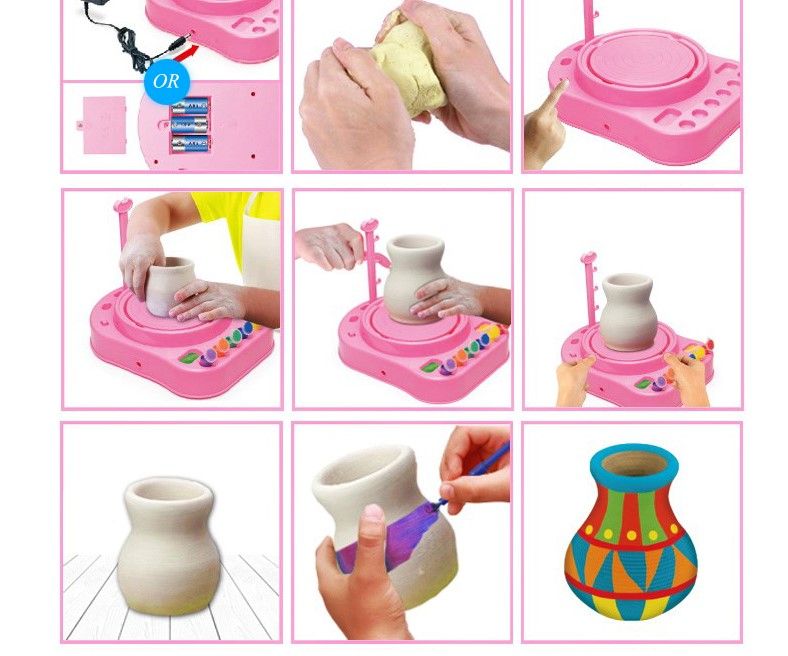 *The pottery wheel allows kids mould different items with clay and paint them. Allow your child get creative and mould diverse objects from imagination.
