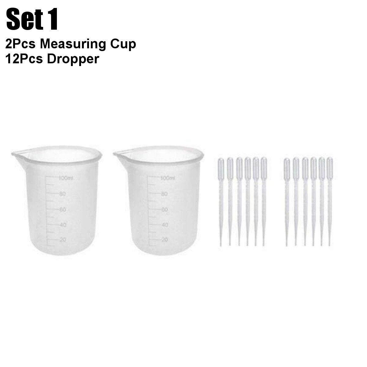 Set 1 2Pcs Measuring Cup 12Pcs Dropper Set 2 2Pcs Measuring Cup 8Pcs Molds 12Pcs Dropper