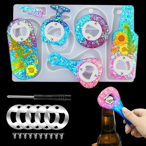 1X DIY Crystal Epoxy Resin Silicone Mold For Beer Opener Bottle Spanner Handmade Epoxy Resin Casting with Stainless Steel Acceories