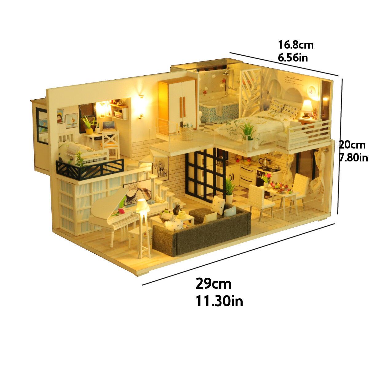 Specifications:Type:DIY Doll HouseSize: 29X20X16.8CMMaterials: wood, fabric, paper, plastic etc.(1cm=10mm=0.39inch)Measurement Details in the attached picture.