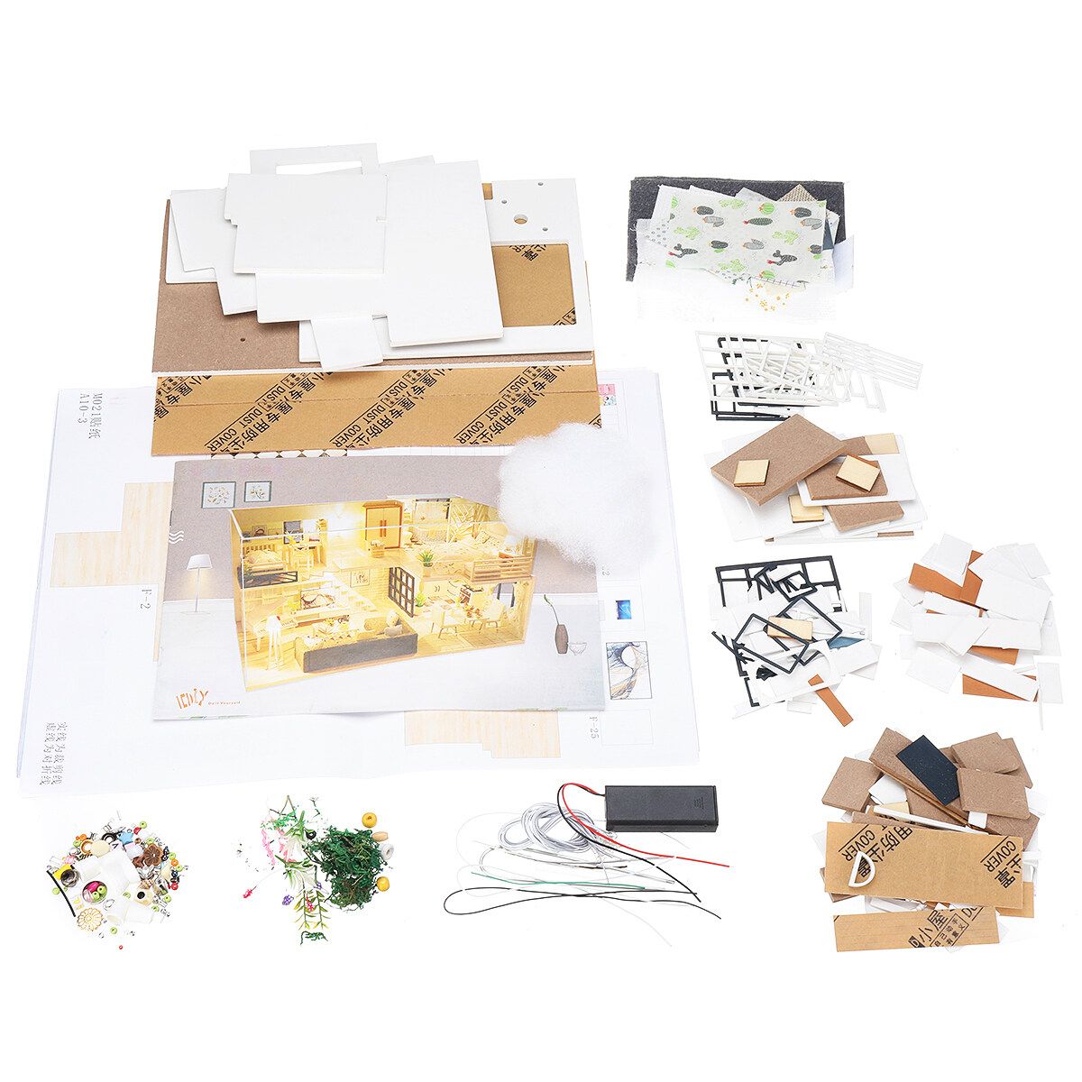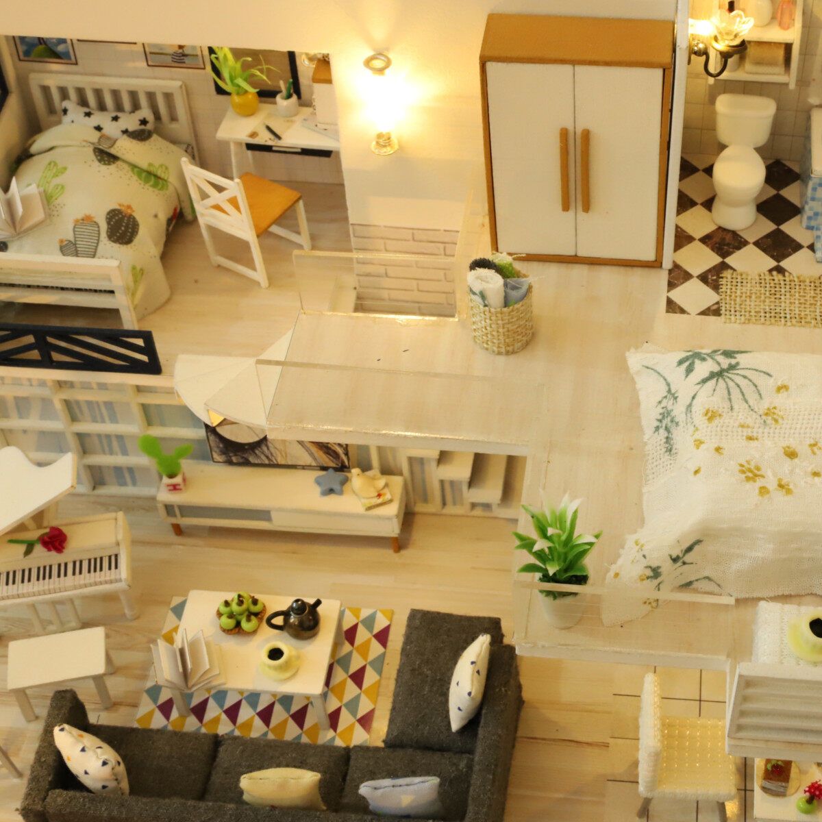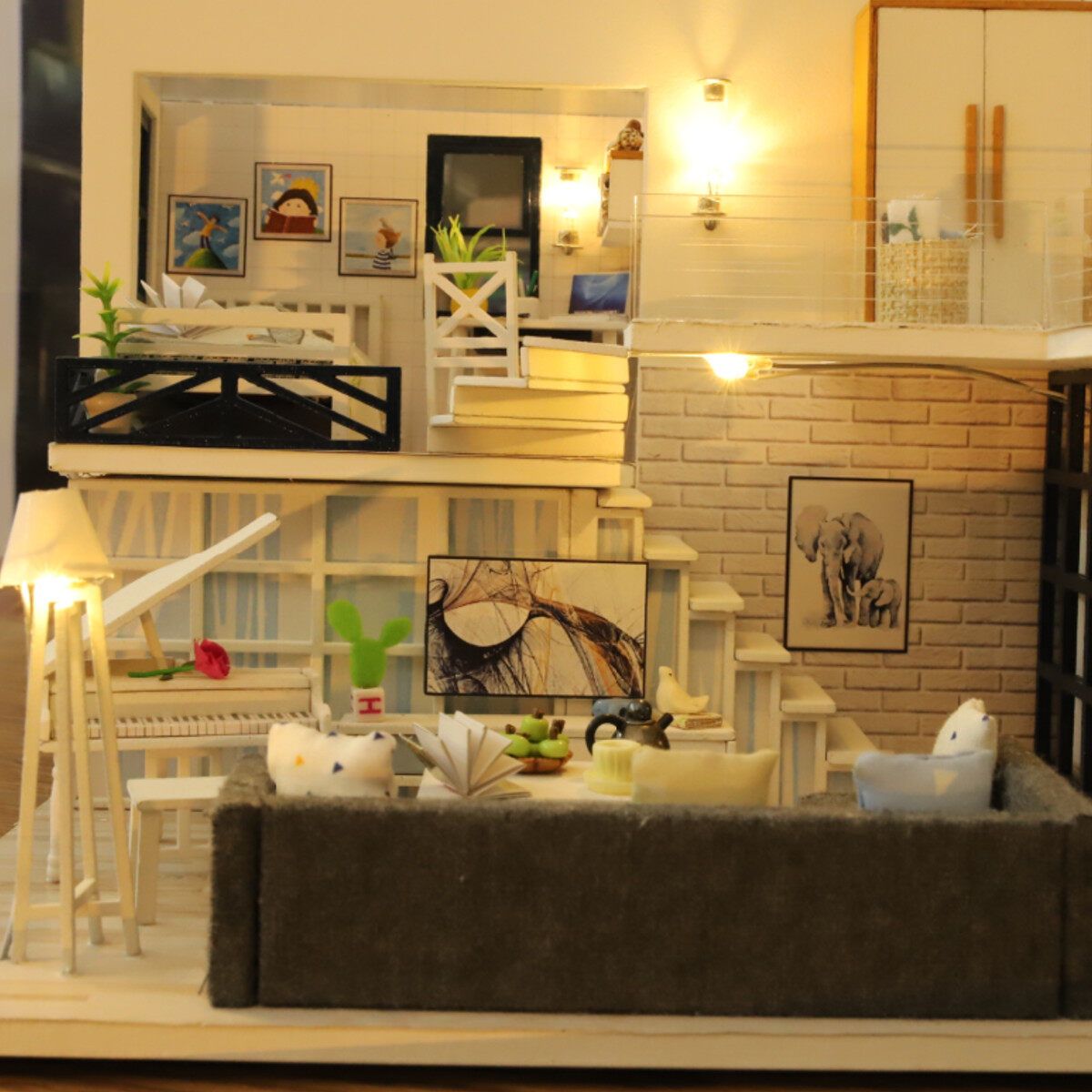 DIY Doll House Furniture 3D Wooden Miniaturas For Children Birthday Gifts With 7 LED Cover