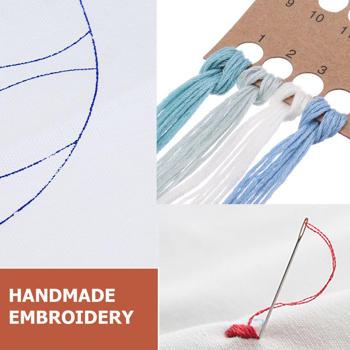 ● Package Content: (1 Pack) Threads, (1pcs) white canvas with stamped pattern on it,(2pcs)embroidery needles, 1pcs instructions.
