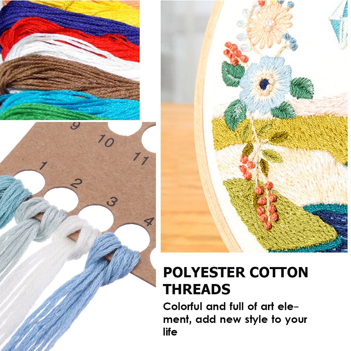 ● Valuable Hand Embroidery Set: full range of embroidery starter kit with all the tools you need to embroider. but the wooden embroidery hoop not in the listing.