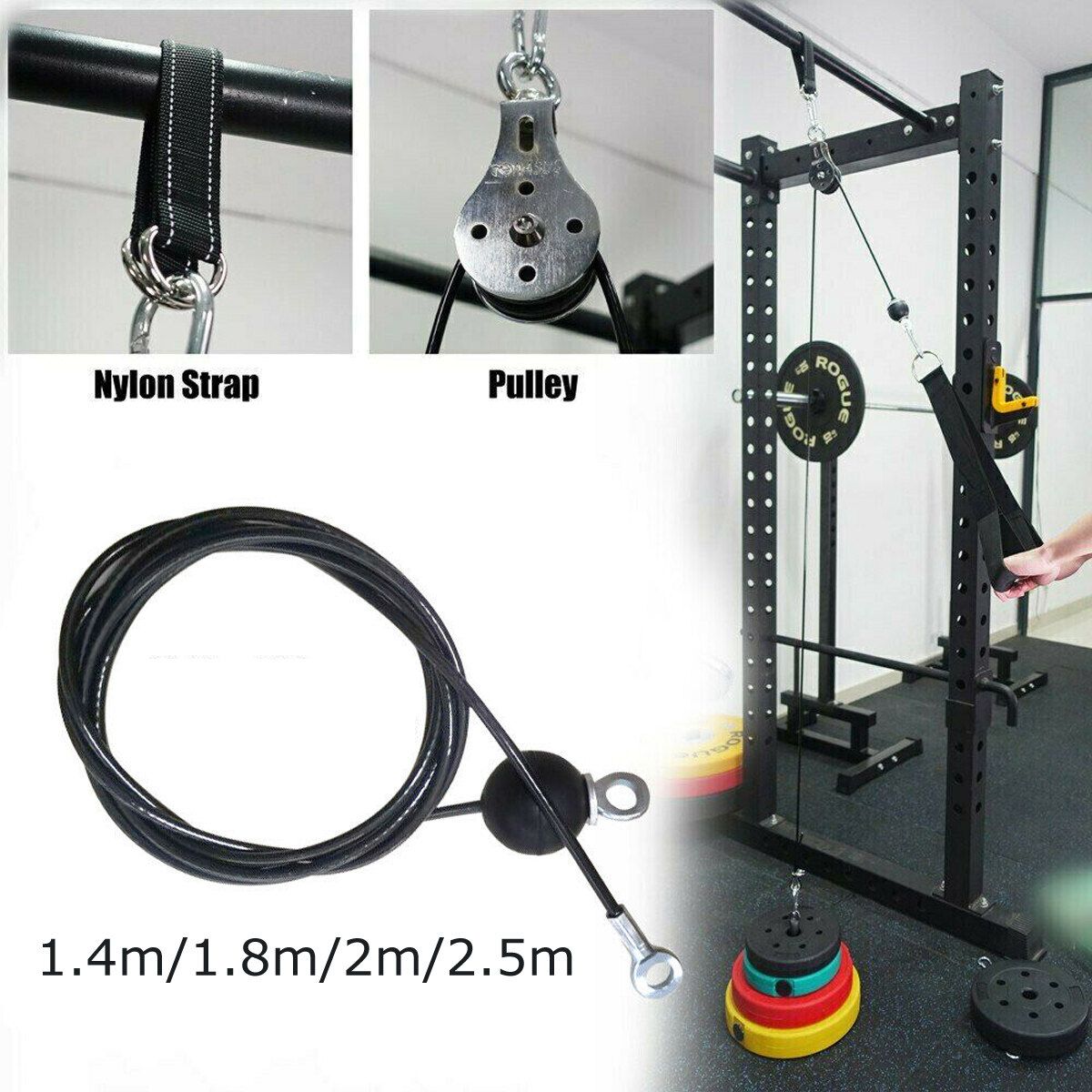 1 x Mute Steel Pulley 1 x Steel Cable(Optional Length) 3 x Carabiner 1 x Loading Strap 1 x Handing Strap 1 x Tricep strap