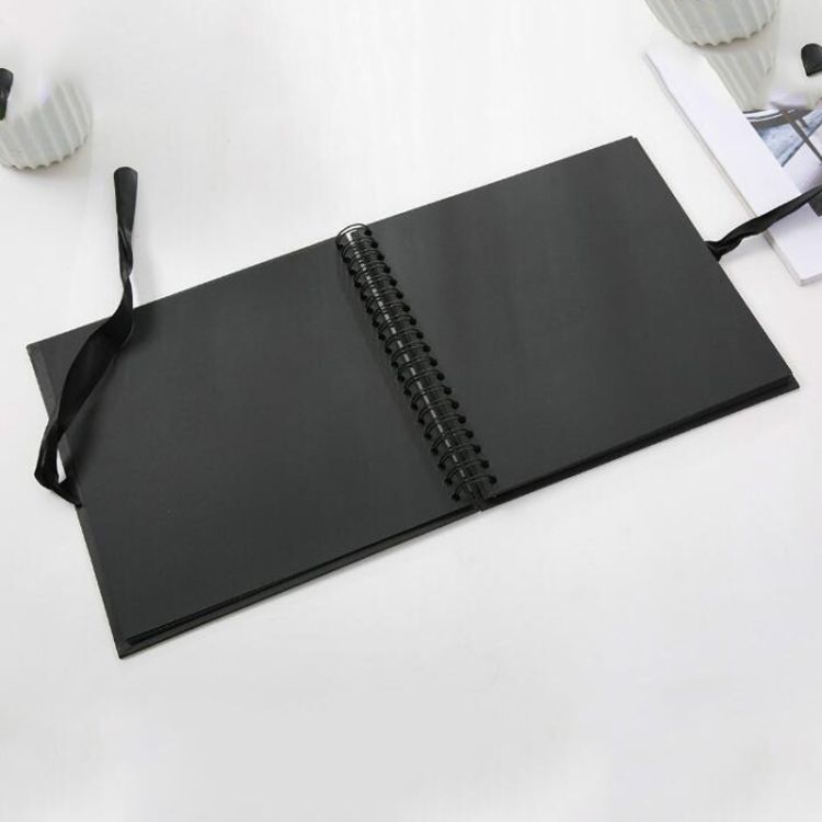6. Features: The cover is made of 1650g gray board, the inner page is 250g full wood pulp black cardboard, the coil is 3/4 coil, and the ribbon width is 25 mm