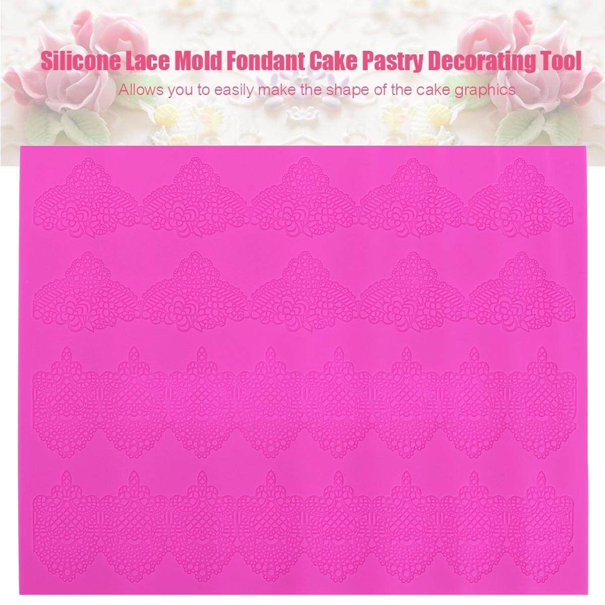 DIYSilicone Lace Mold Mould Sugar Craft Fondant Mat Cake Kitchen Baking Tools Description: Type:CakeDecoratingTools : Material:Silicone Size:approx.31.5*24.8cm Package Size:approx.37*5*3cm Weight:about 166g (1cm=10mm=0.39inch)