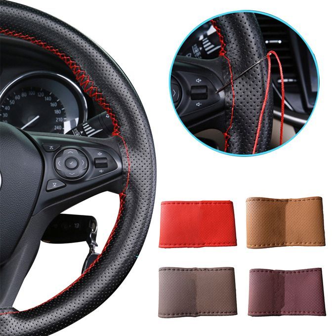 Buy DIY Stitching Soft Faux Leather Car Steering-Dark Brown in Nigeria
