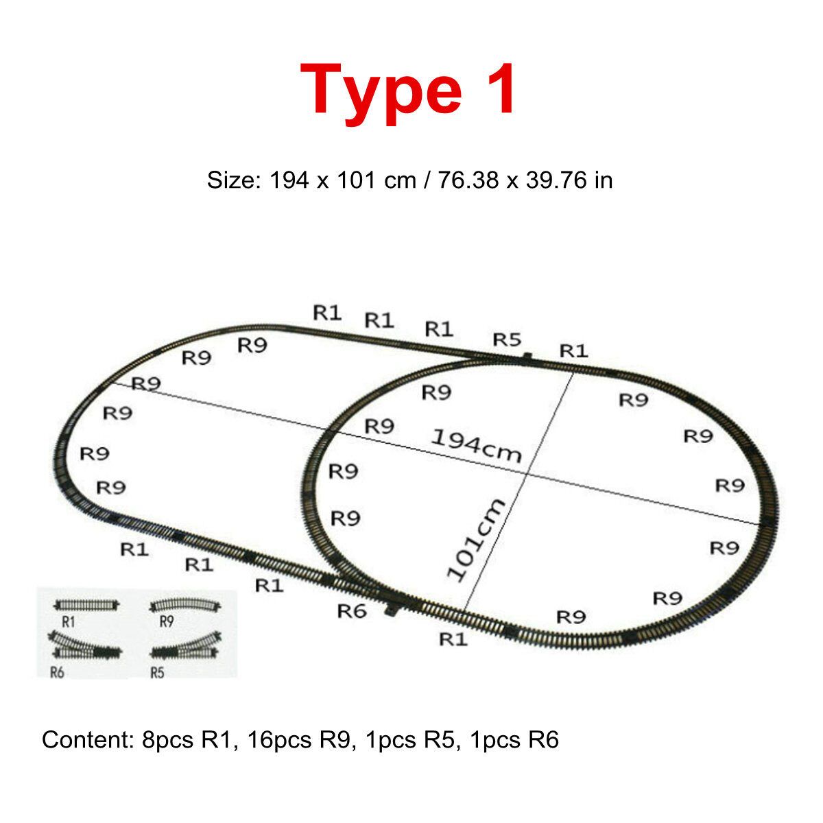 Type 5 Content: 30pcs R1, 24pcs R9, 4pcs R2, 4pcs R5, 4pcs R6, 1pcs R10, 2pcs R3, 1 set Railway Bridge ( )