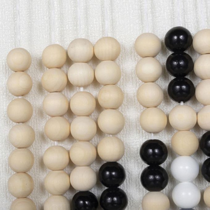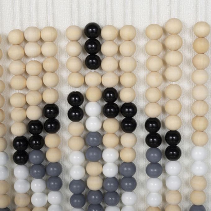 50 Pieces 20mm White Beads38 Pieces 20mm Grey Beads30 Pieces 20mm Black Beads127 Pieces 20mm Wood Color Beads11 Pieces 12mm Black Beads11 Pieces Rope1 Piece Wooden Stick