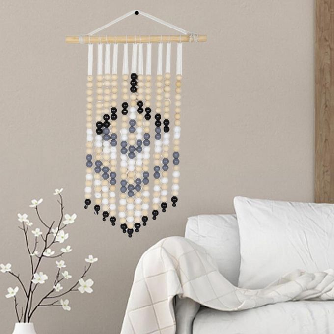 beaded tapestry;wood bead tapestry wall hanging home decoration;handmade material kit wall pendants Bohemian;Colorful Wooden Beads Stick Creative Wall Art DIY;Tapestry Bedroom House Apartment Dorm Ornament;Modern Hanging Rope Living Room Handcrafts set