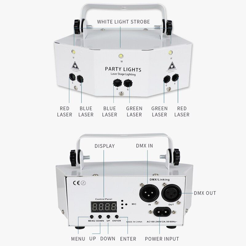 1X DJ Disco 9 Holes Laser Projection Stage Light LED Music Sound Control Light RGB Beam Strobe Lamp for Bar KTV Decoration Party