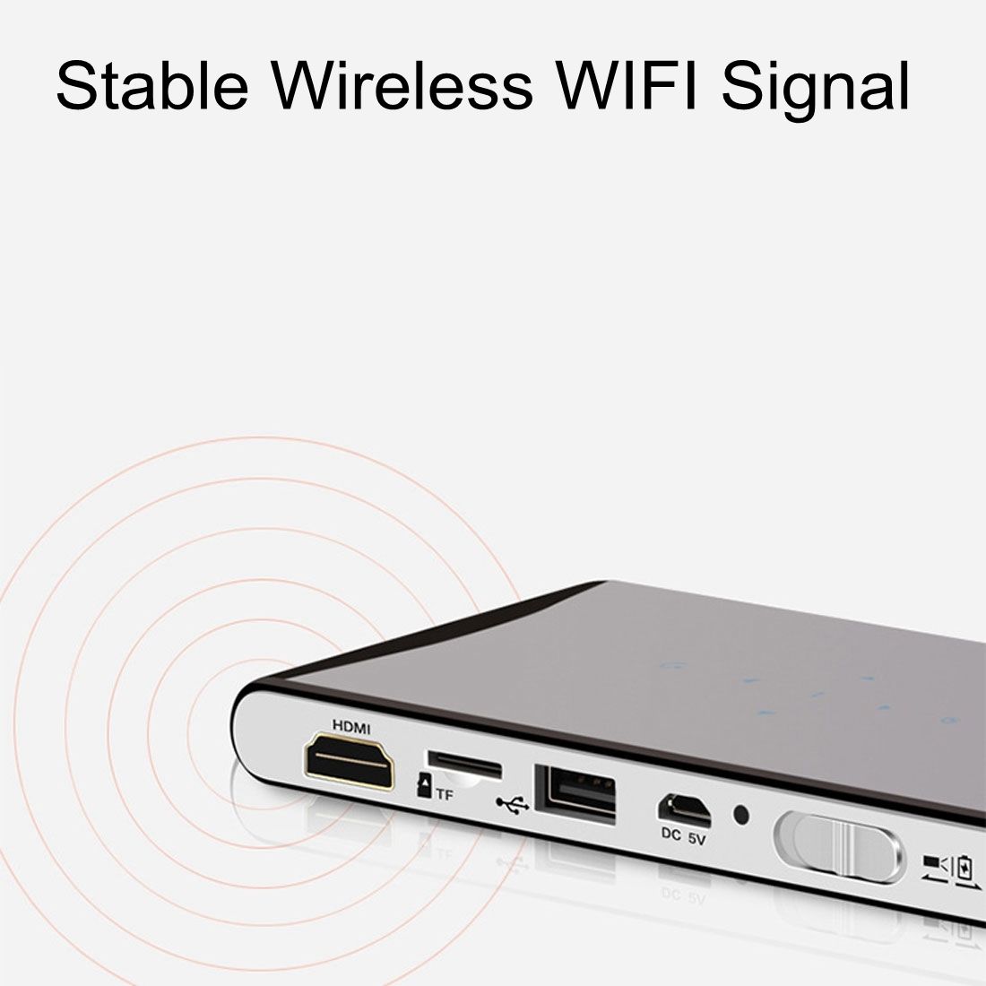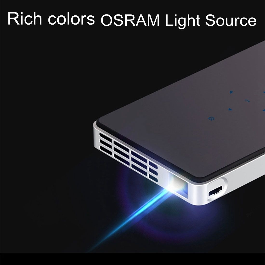 DLP100W Mini Android 4.4 60 Ansi Lumins 1080P Quad-core DLP Pico Projector ,Support WiFi / Bluetooth / HDMI / USB / TF / Miracast / Airplay(Black)