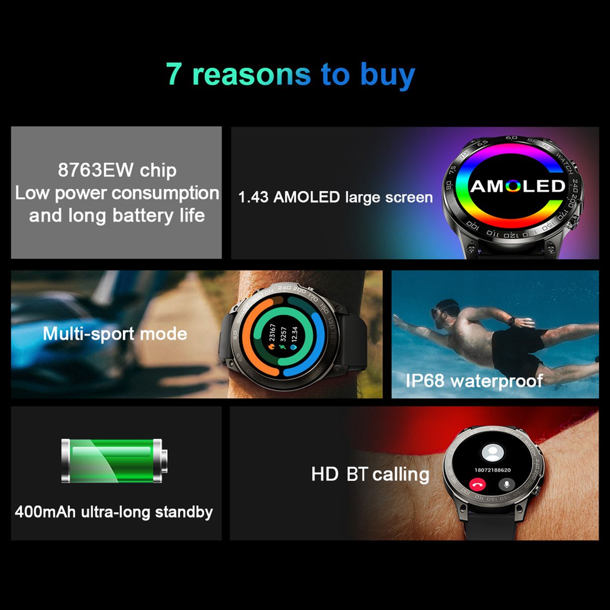 ▶ Fine Workmanship. Equipped with 1.43icnhes AMOLED screen, HD display with touch control function, 466*466px unprecedented visual clarity, providing you with a precise and clear experience anytime and anywhere. You can choose different themes of Watch Faces from the App.