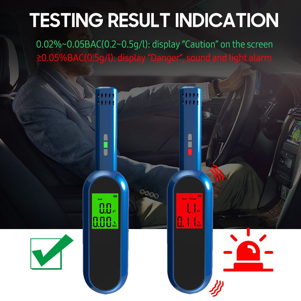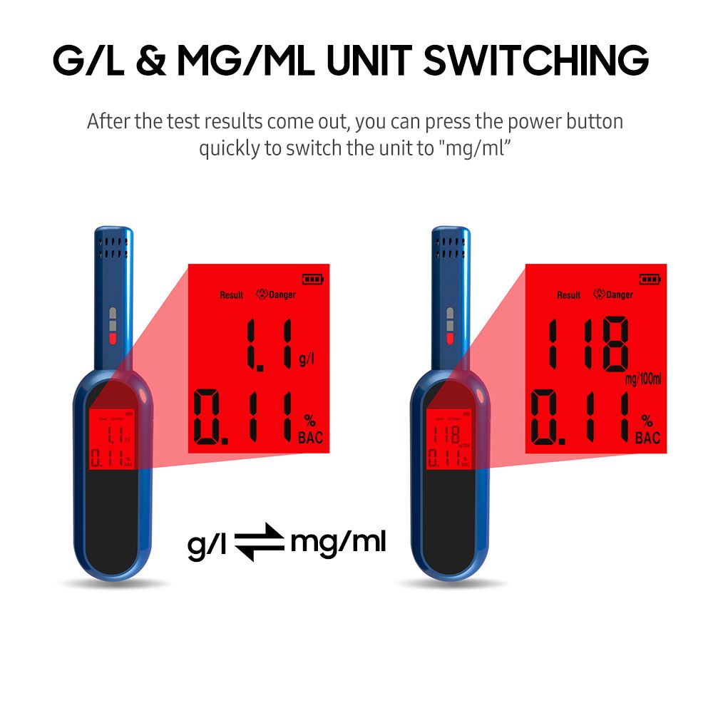 Features: Safe and Easy to Use: blow for 3~5 seconds near the detector blow port, then wait for a few seconds, the test result will display. No contacting detection is safer. Testing Result Indication: if the result is 0.02%~0.05BAC(0.2~0.5g/l), it will display Caution on the screen, if the result is ≥0.05%BAC(0.5g/l), the screen will display Danger, and sound and light alarm. Profeional Alcohol Tester: 0.00%~0.19%BAC(0.0~1.9g/l) detecting range, 0.01%BAC accuracy, the test result also can be switched between g/l and mg/ml. Useful Breathalyzer: it has compact design and portable size, the advanced sensor ensures the accuracy of the measurement, very convenient to use. Power Saving Auto-off: after the detection result is displayed for 10 seconds, the tester will shut down automatically. Low Power Consumption: built-in with 500mAh lithium battery, easy to be recharged via the USB cable. Specifications: Material: ABS Display Method: LCD screen display Atmospheric Preure: 86~106kPa Alcohol Sensor Type: Semiconductor sensor Detection Range: 0.0~1.9g/l & 0.00%~0.19%BAC Accuracy: 0.01%BAC Response Time: 3~10 seconds Warm-up Time: 10s Charging: 5V DC USB Battery: 500mAh lithium battery Item Size: 185 * 43 * 25mm / 7.28 * 1.69 * 0.98in Item Weight: 70g / 2.47oz Package Weight: 100g / 3.53oz Package Size: 19 * 4.5 * 3cm / 7.48 * 1.77 * 1.18in Packing List: 1 * Tester 1 * Charging Cable 1 * Manual (English+Japanese)