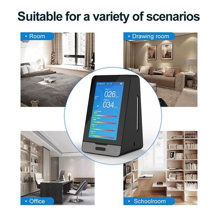 11. Detection range: AQI (0-500) PM2.5 (0-999 ug/m3); HCHO (0.001-1.999Mg/m3); TVOC (0.001-9.999Mg/m3)