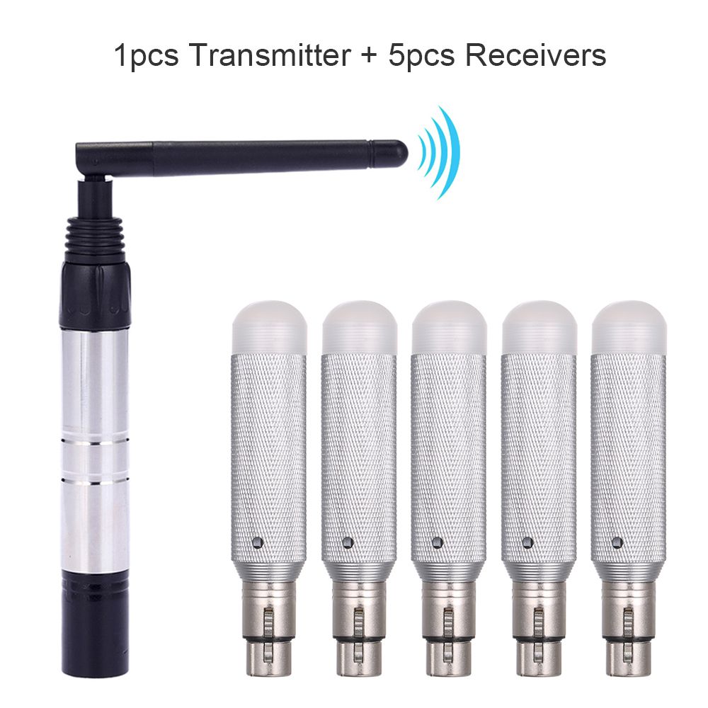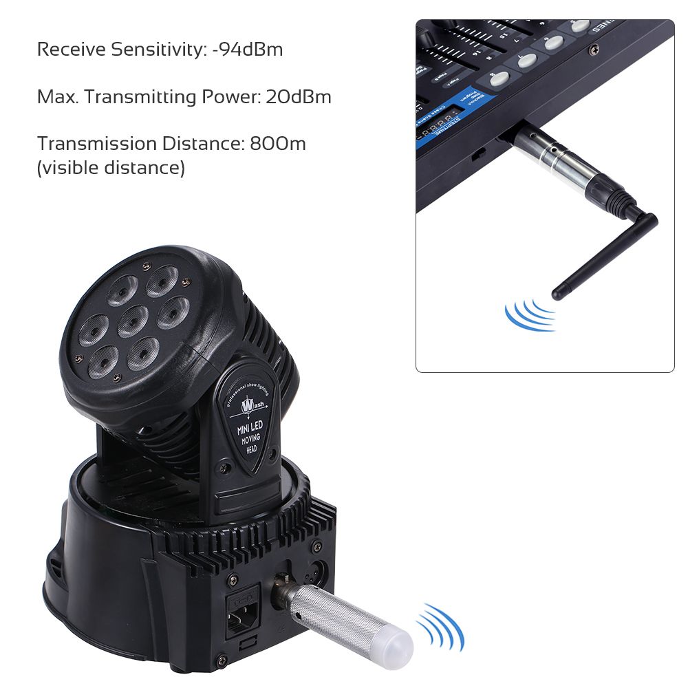 Our wireless transmitter can transmit standard DMX 512 protocol data (generated by console) by wireless way, supporting 8000m ultra long distance transmission. 7 groups ID code settable for you to control different group lighting.