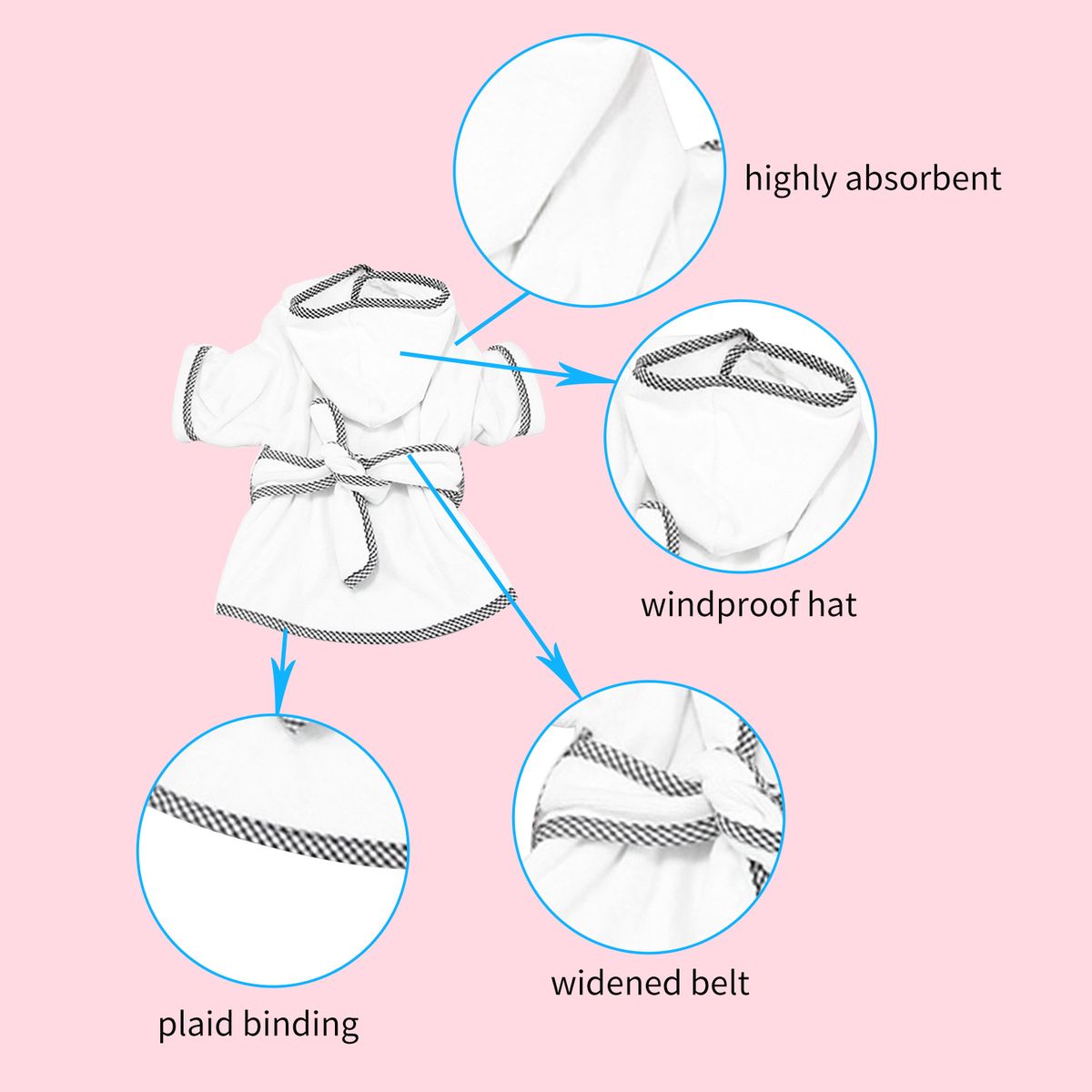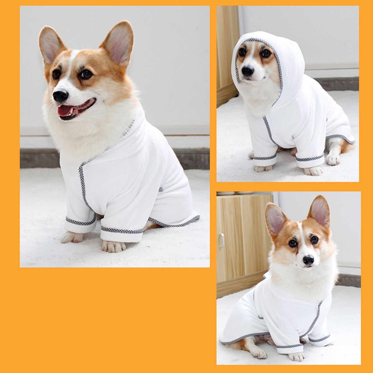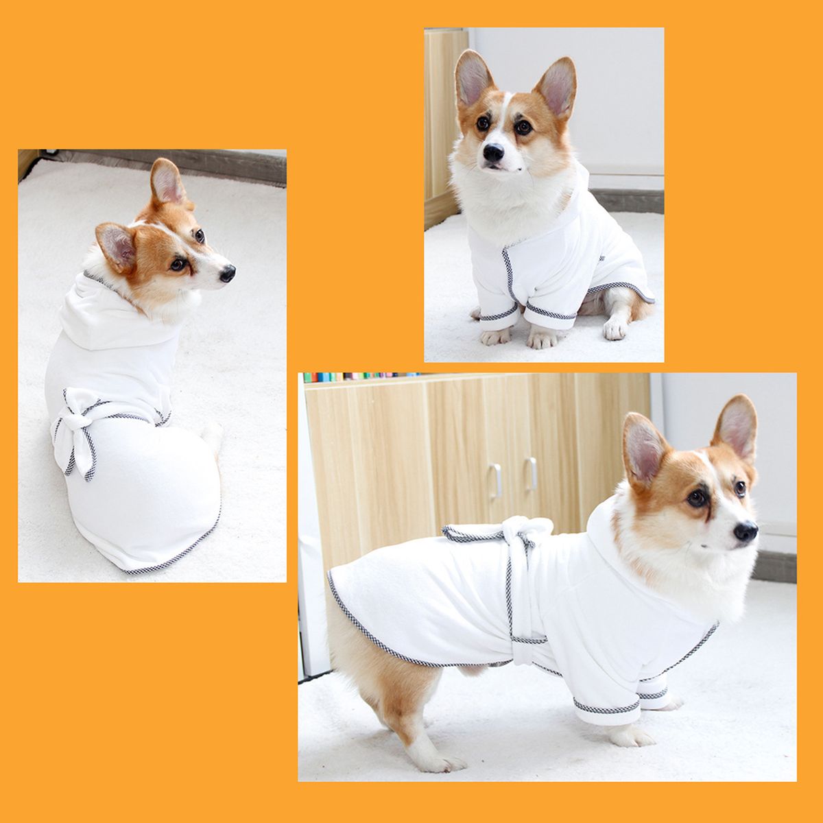 Keep warm: The highly absorbent material and the wrapping design can absorb water quickly. Compared with using a hairdryer and other drying methods, this is an ideal way to prevent pets from catching a cold after bathing or walking in the rain. This bathrobe can also serve as a pajama,comfortable and windproof.