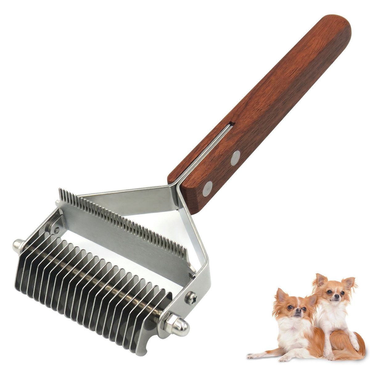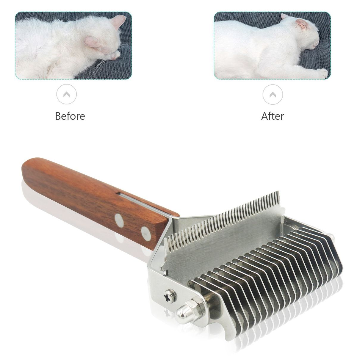 Double-Sided Head: 20 teeth are used to cut stubborn knots, mats, and tangles without pulling, and then finish with teeth shedding brush for thinning and deShedding. Professional pet beauty tools effectively reduce dead hair by 95%.