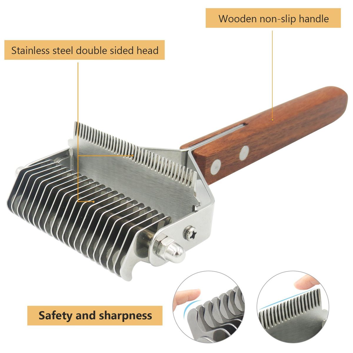 No Scratch, No Pain: Both sides of the teeth end round, gently massage pet skin, no scratch. At the same time, the inside of the teeth is sharp enough to smoothly cut hard pads, tangles, and knots without pulling.